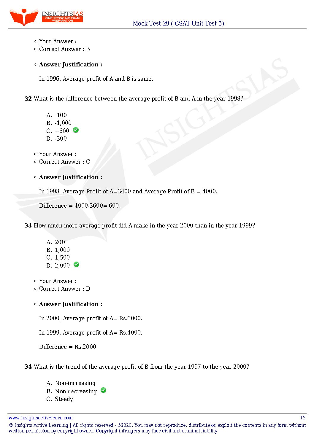 INISGHTS ONINDIA PT TEST-29 ( CSAT UNIT TEST-5) 2019 quantity