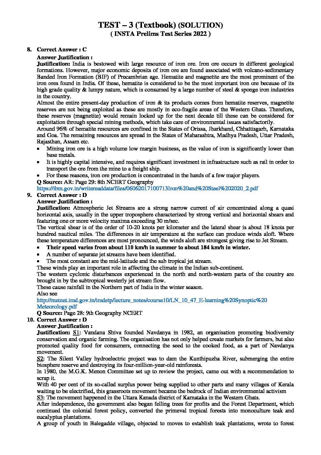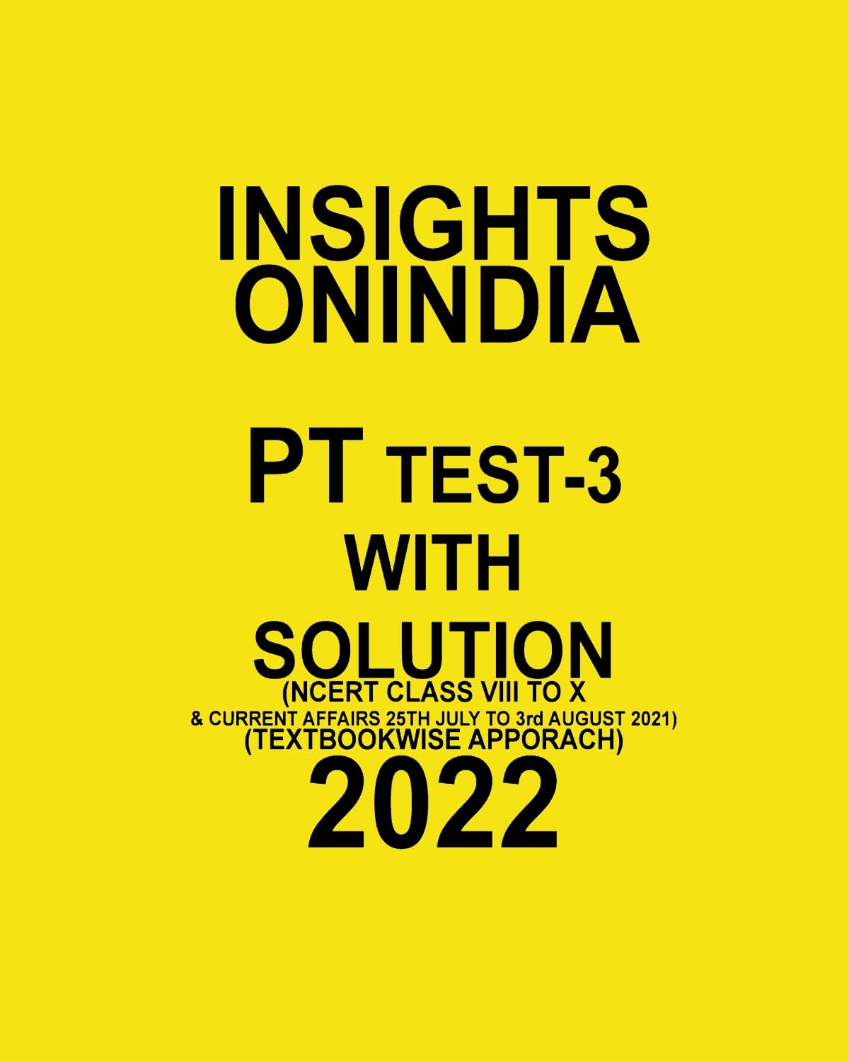 INSIGHTS ONINDIA PT TEST-3 WITH SOLUTION ( NCERT CLASS VIII-X AND CURRENT AFFAIRS 25 JULY- 3 AUG 2021) ( TEXT BOOKWISE APPROACH) 2022 (BLACK & WHITE)