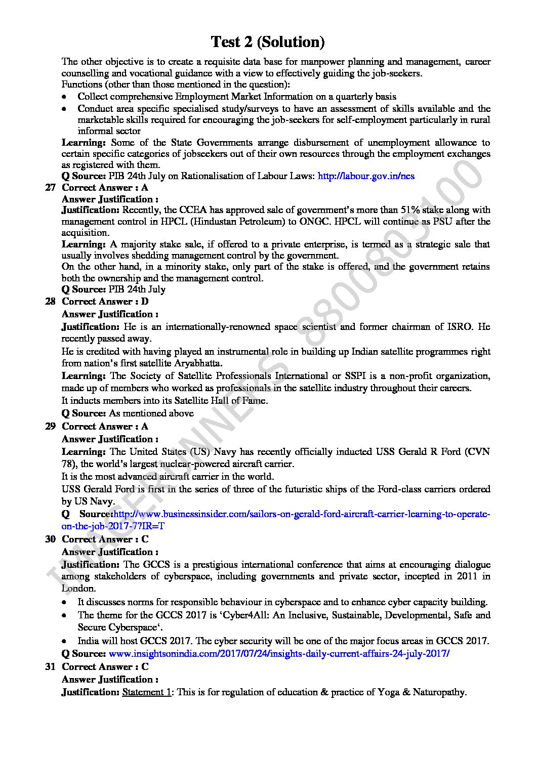 INISGHTS ONINDIA PT TEST WITH SOLUTION-2 2018