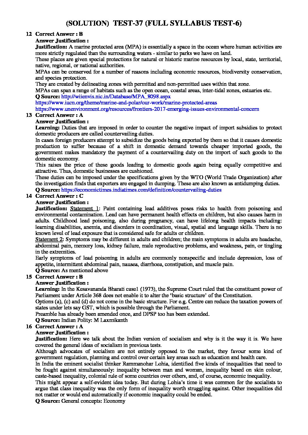 / INISGHTS ONINDIA PT TEST WITH SOLUTION-37 ( FULL SYLLABUS TEST-6) 2018