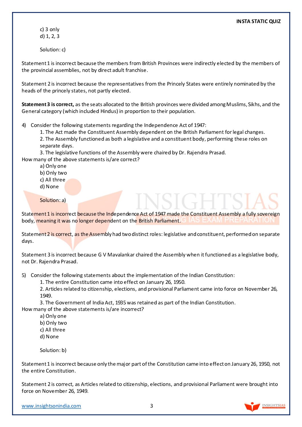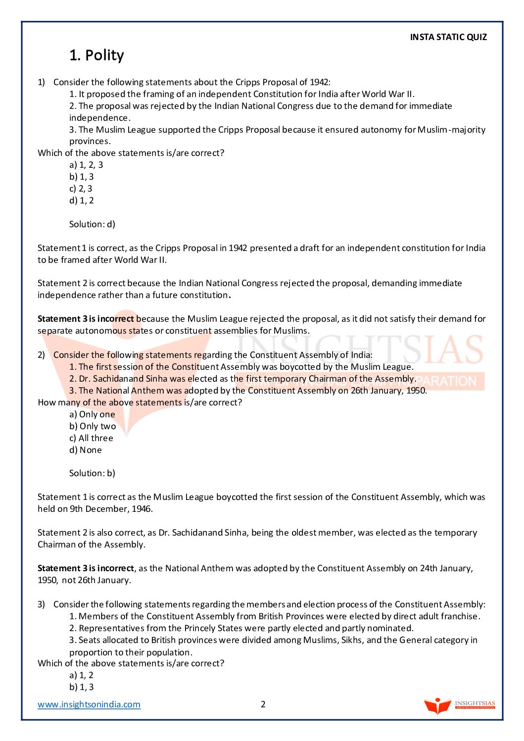 INSIGHTSIAS INSTA Static Quiz April 2021