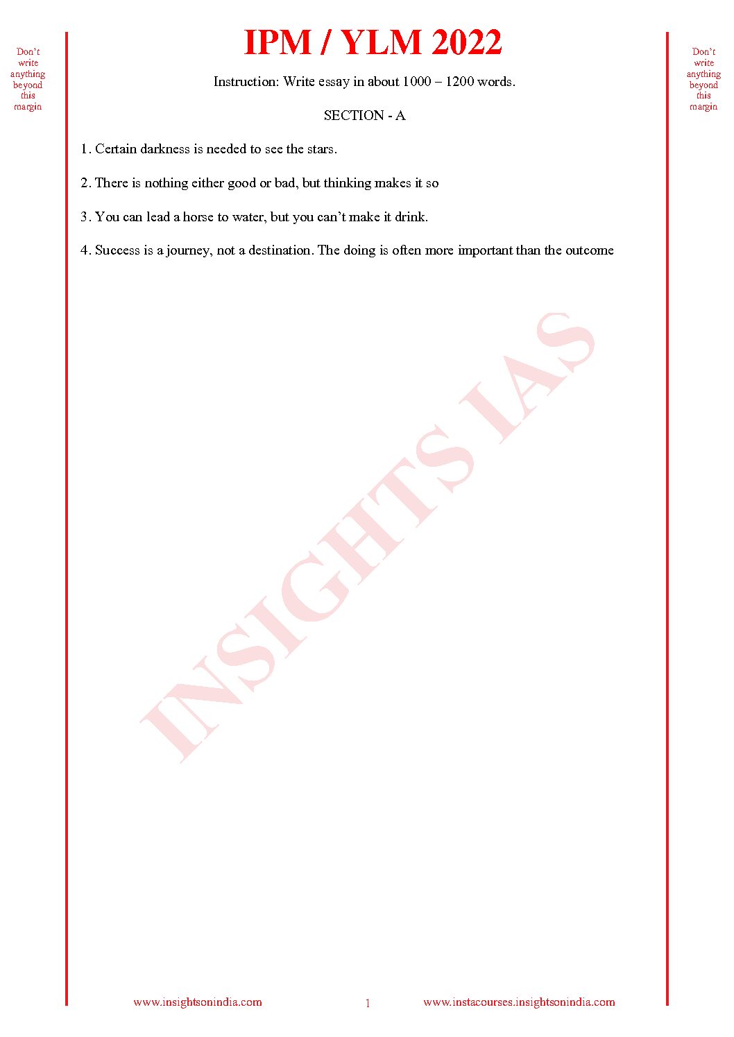 / INSIGHTS IAS INSIGHTS ONINDIA 2022 QCA (QUESTION CUM ANSWER BOOKLET) TEST-19 (BLACK & WHITE)
