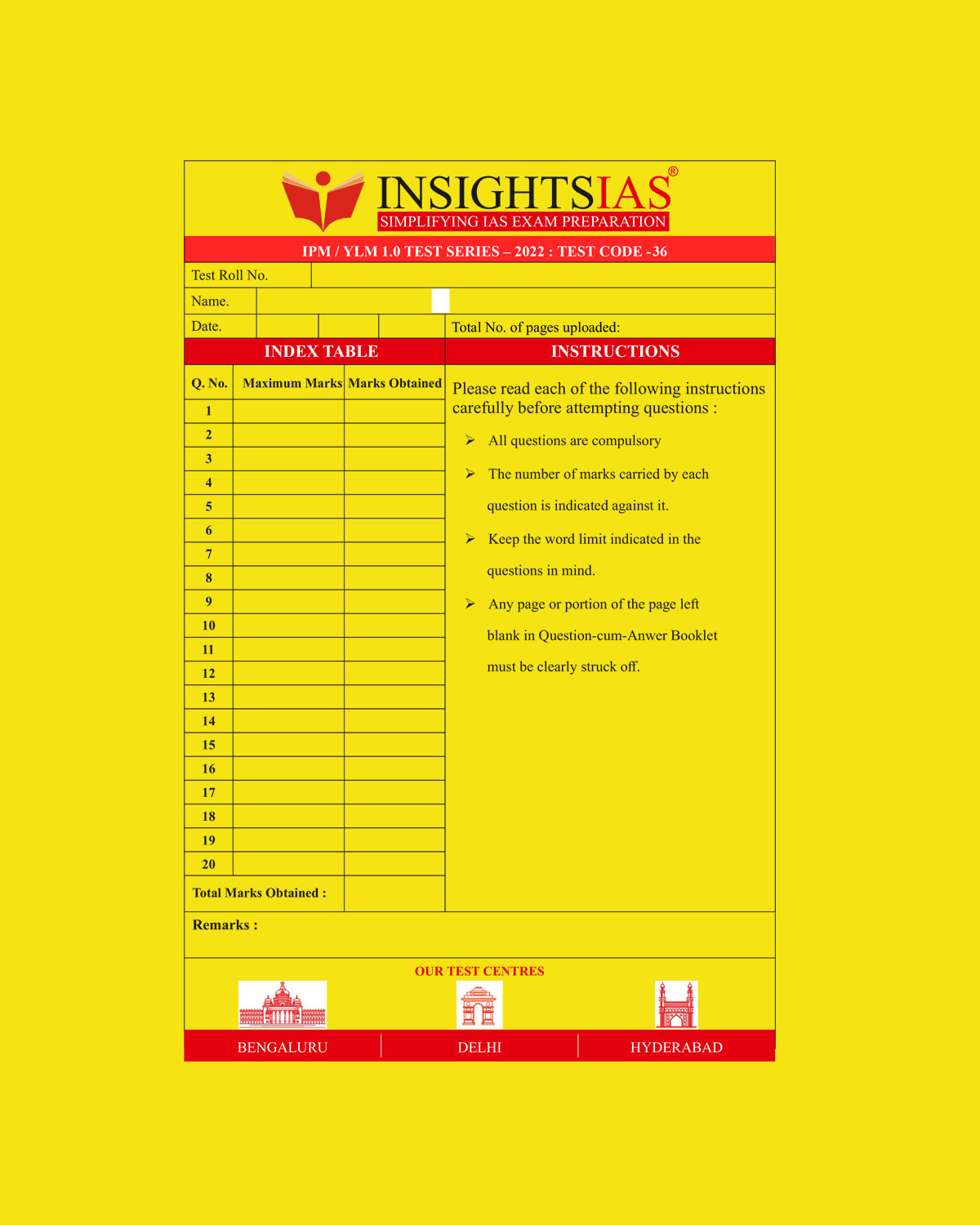 / INSIGHTS IAS INSIGHTS ONINDIA 2022 QCA (QUESTION CUM ANSWER BOOKLET) TEST-36 (BLACK & WHITE)