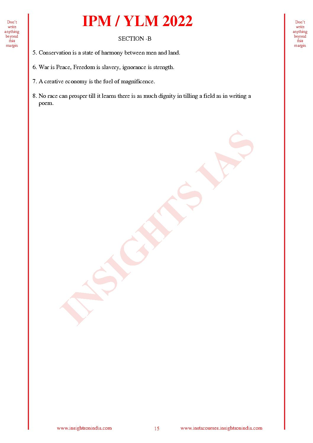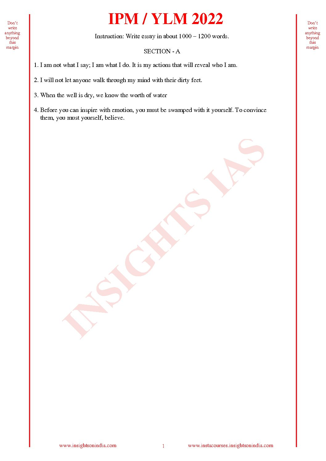 / INSIGHTS IAS INSIGHTS ONINDIA 2022 QCA (QUESTION CUM ANSWER BOOKLET) TEST-38 (BLACK & WHITE)