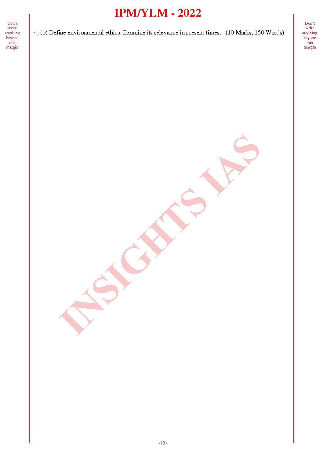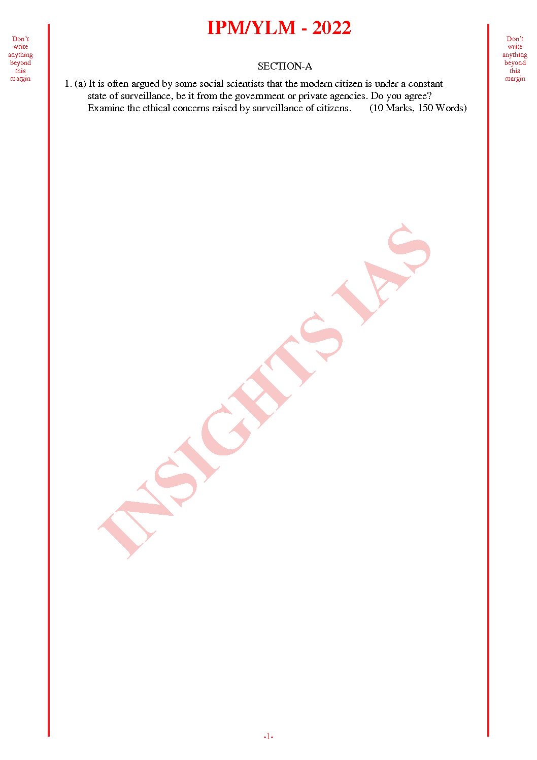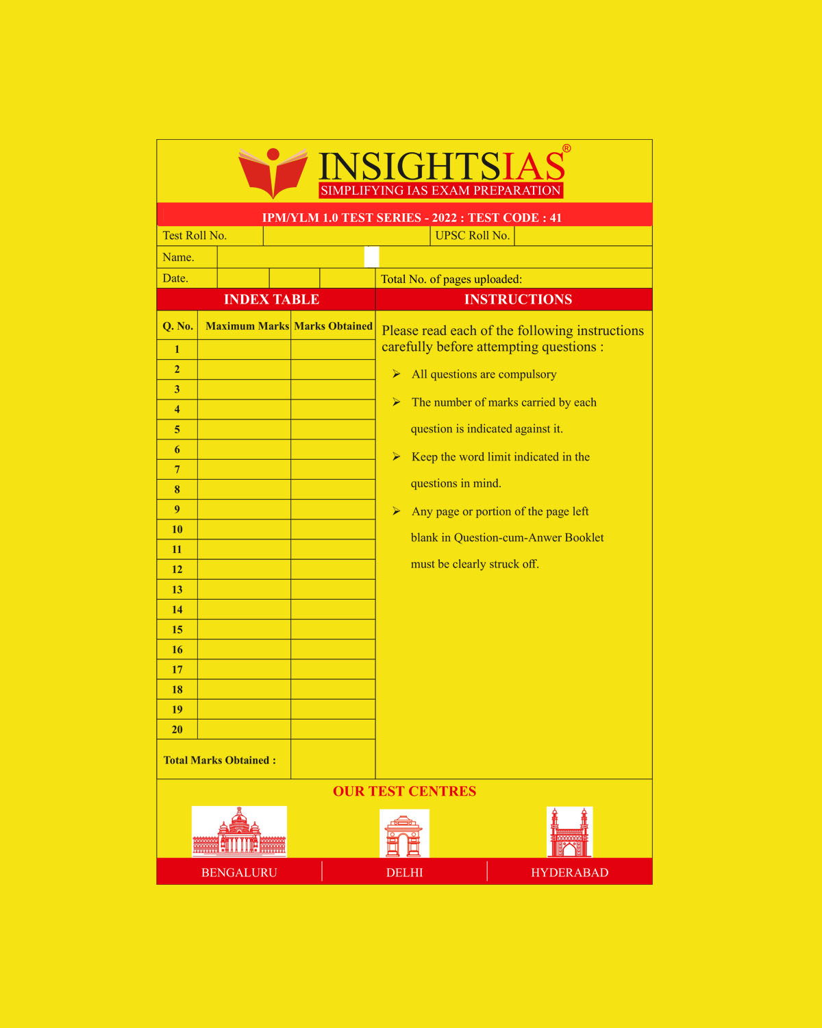 / INSIGHTS IAS INSIGHTS ONINDIA 2022 QCA (QUESTION CUM ANSWER BOOKLET) TEST-41 (BLACK & WHITE)