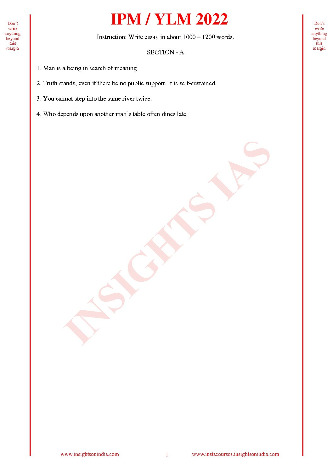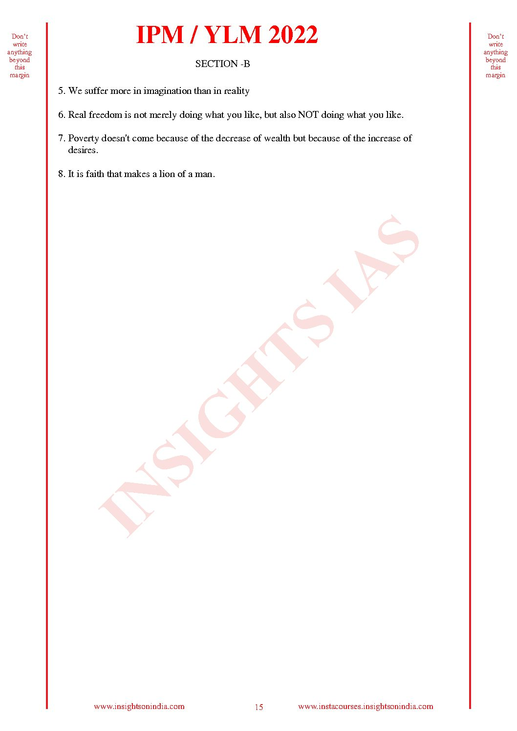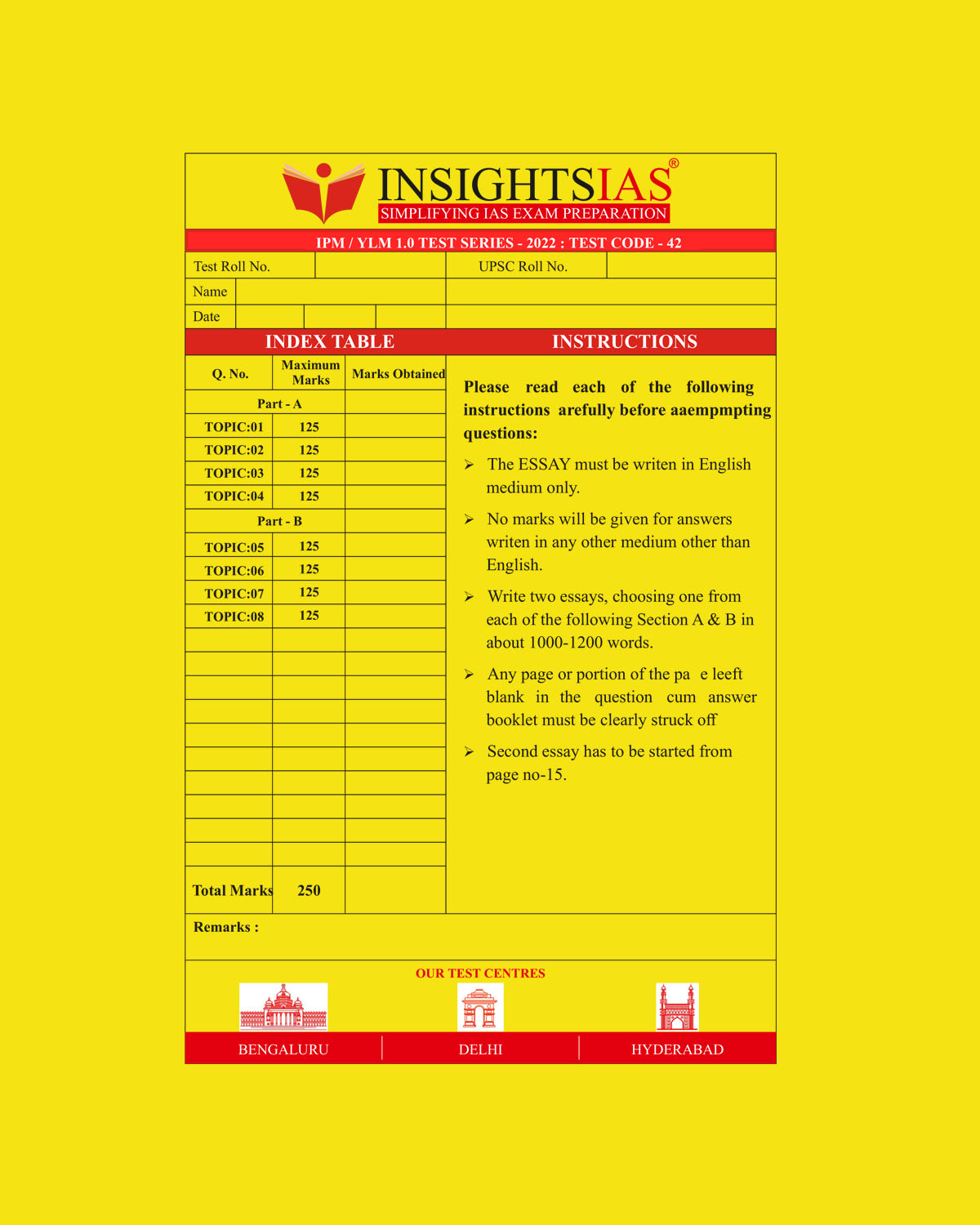/ INSIGHTS IAS INSIGHTS ONINDIA 2022 QCA (QUESTION CUM ANSWER BOOKLET) TEST-42 (BLACK & WHITE)