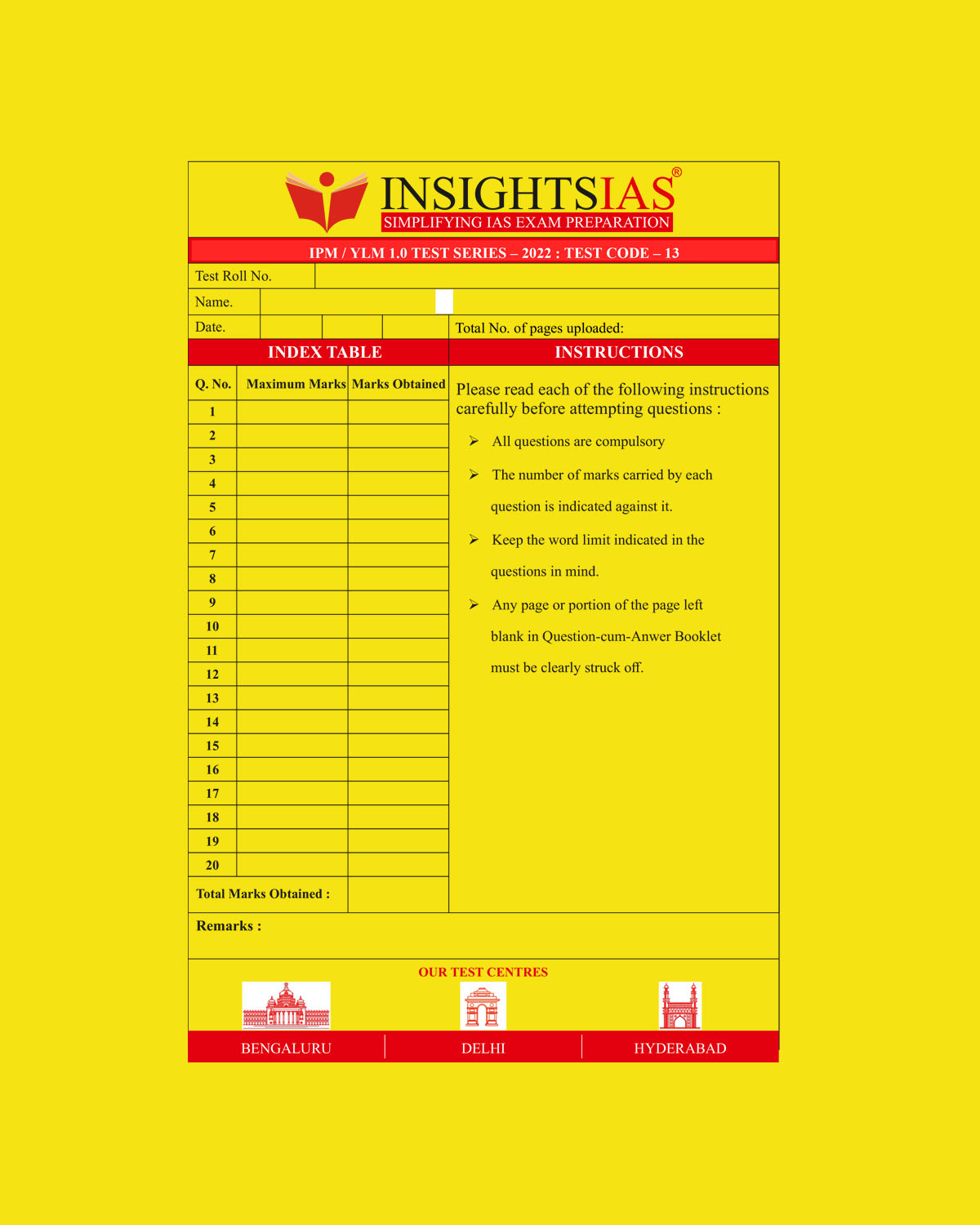/ INSIGHTS IAS INSIGHTS ONINDIA 2022 QCA (QUESTION CUM ANSWER BOOKLET) TEST-13 (BLACK & WHITE)