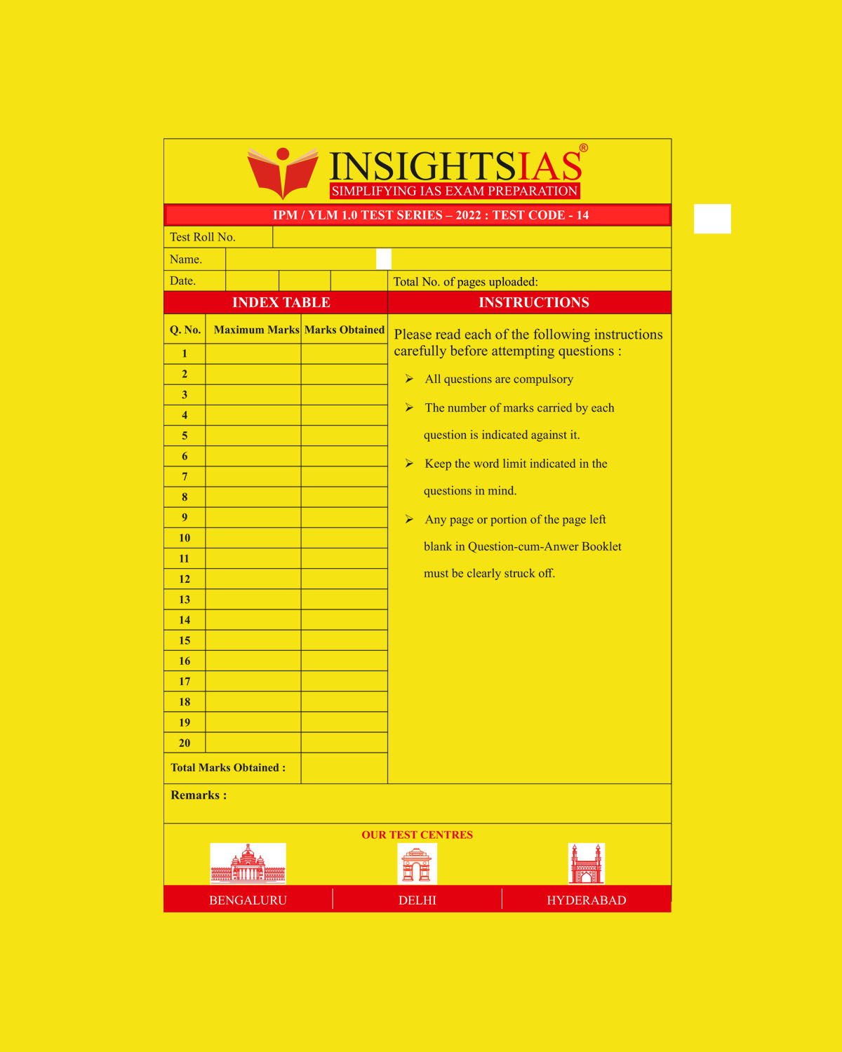 / INSIGHTS IAS INSIGHTS ONINDIA 2022 QCA(QUESTION CUM ANSWER BOOKLET) TEST-14 (BLACK & WHITE)