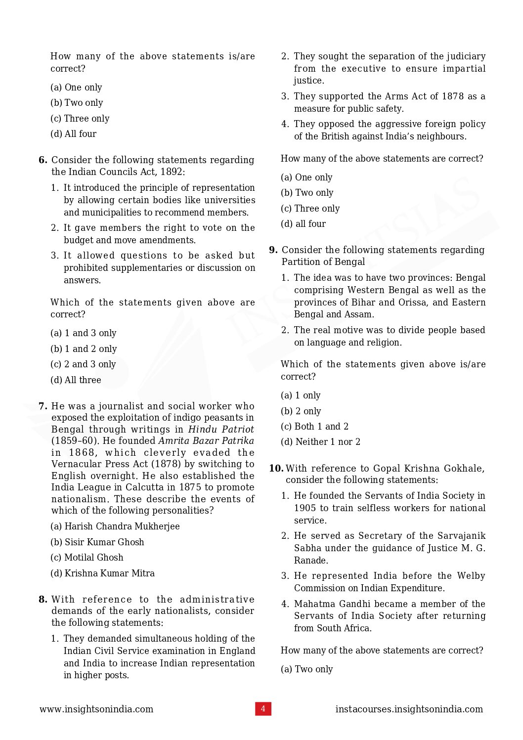 INSIGHTS IAS INSIGHTS ONINDIA 2026 IPM TEST-10 2026 FINAL MODERN INDIA (ENGLISH) {BLACK AND WHITE}