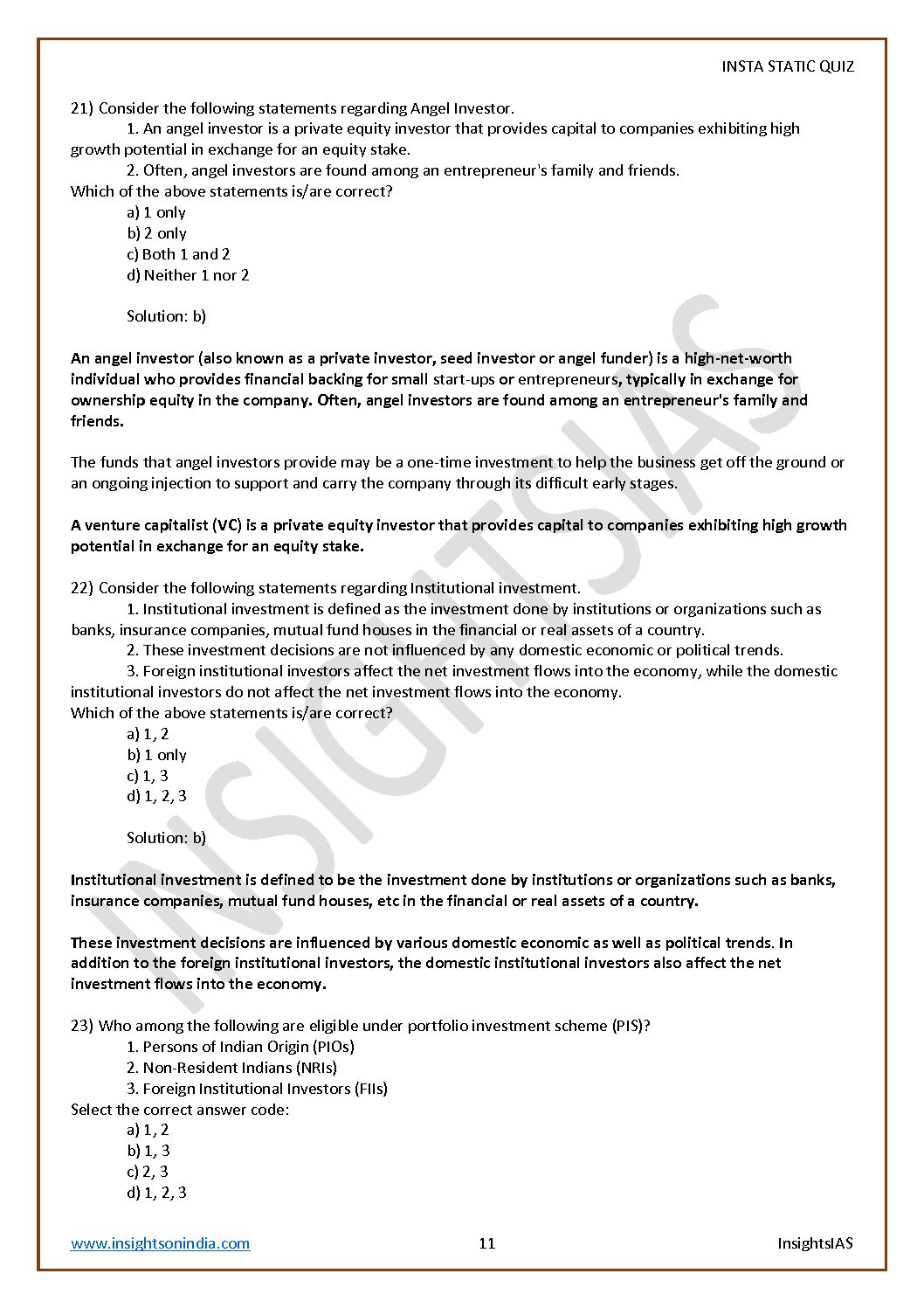 INSIGHTSIAS INSTA Static Quiz April 2021