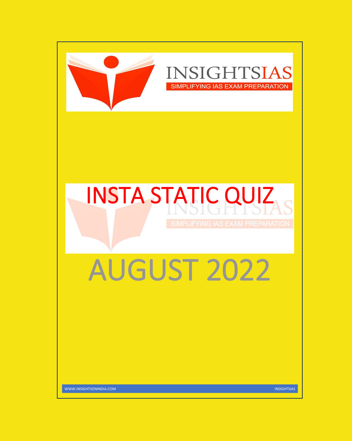 INSIGHTS IAS INSIGHTS ONINDIA INSTA STATIC QUIZ AUGUST 2022 (BLACK & WHITE) quantity