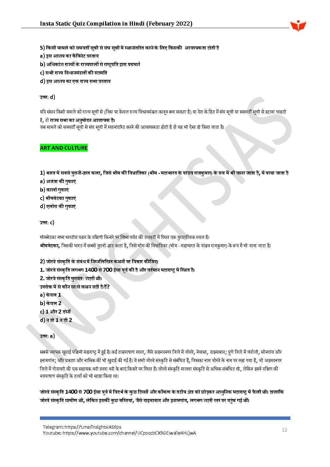 INSIGHTS IAS INSIGHTS ONINDIA INSTA STATIC QUIZ COMPILATION IN HINDI FEBRUARY-HINDI-2022 (BLACK & WHITE)