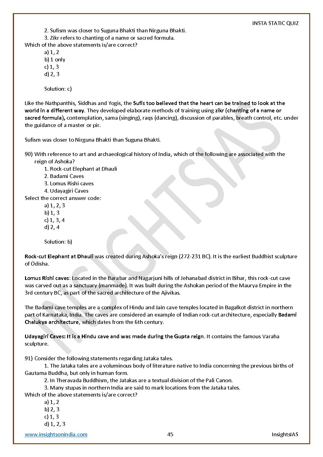 INSIGHTSIAS INSTA Static Quiz April 2021