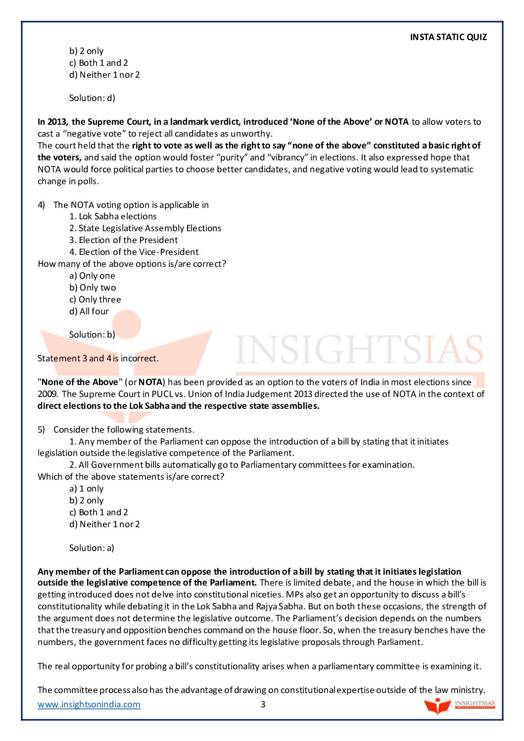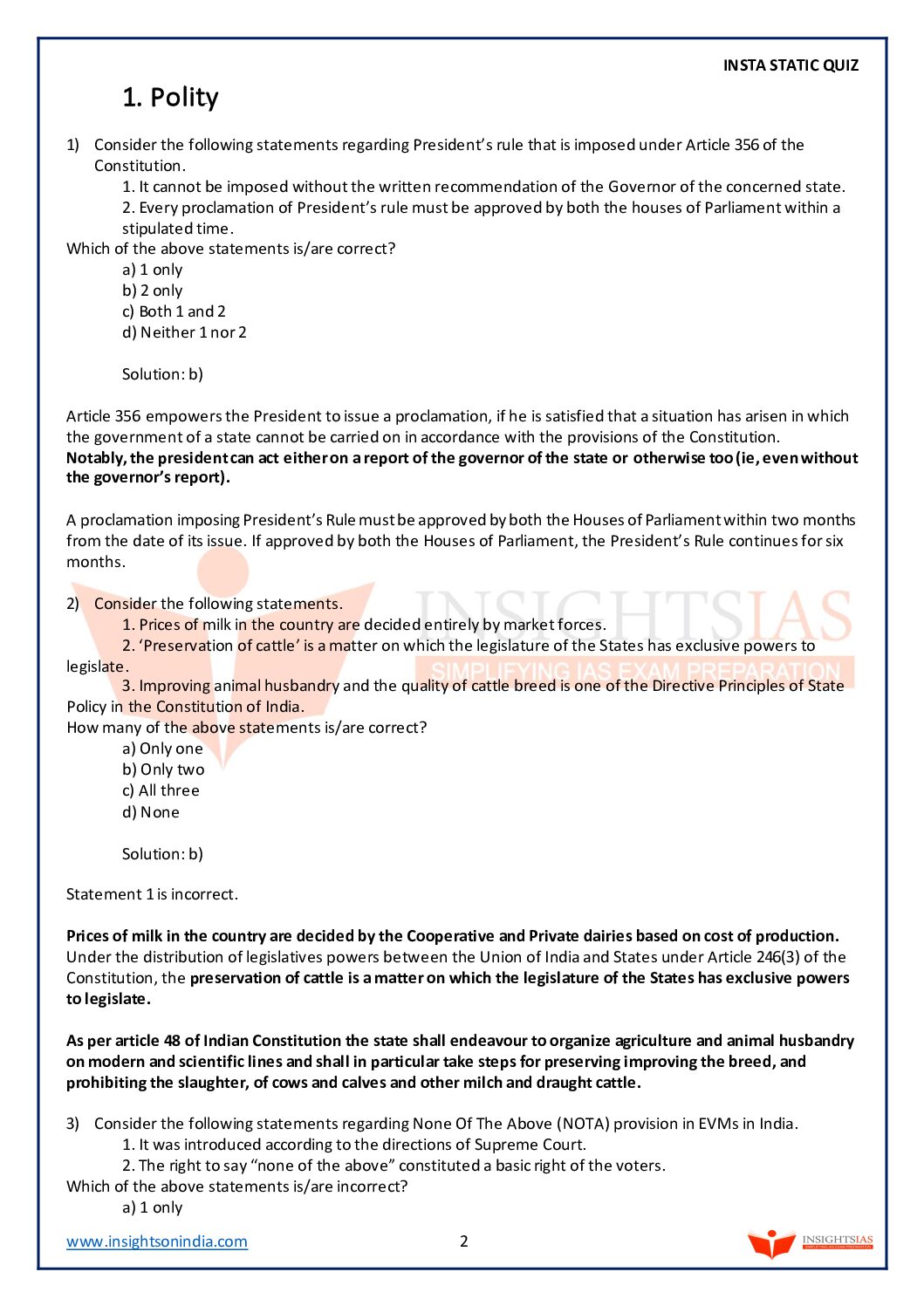 INSIGHTSIAS INSTA Static Quiz February 2021