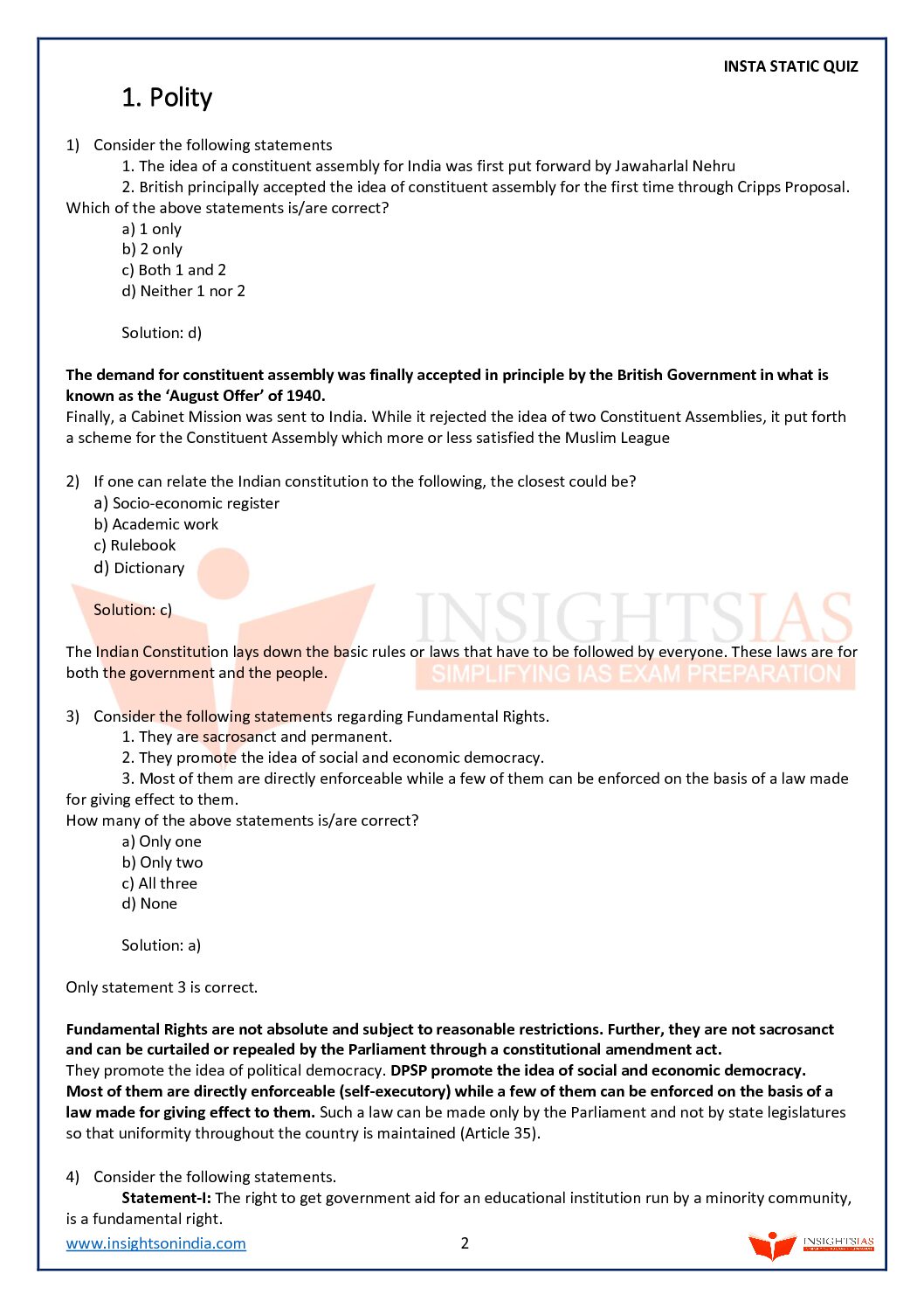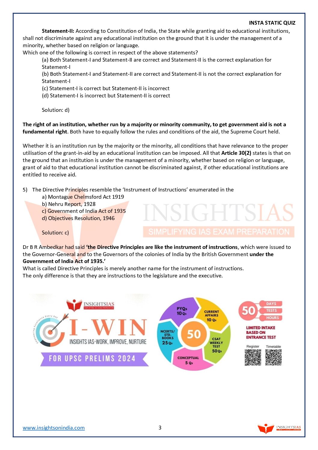 INSIGHTS IAS INSIGHTS ONINDIA INSTA STATIC QUIZ NOVEMBER 2023 FINAL ENGLISH {BLACK AND WHITE} quantity