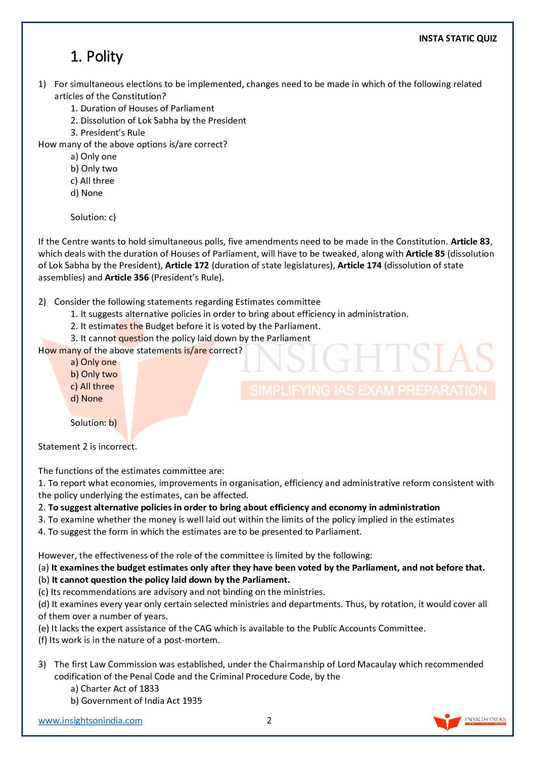 INSIGHTS IAS INSIGHTS ONINDIA INSTA STATIC QUIZ OCTOBER 2023 FINAL {ENGLISH} {BLACK AND WHITE} quantity