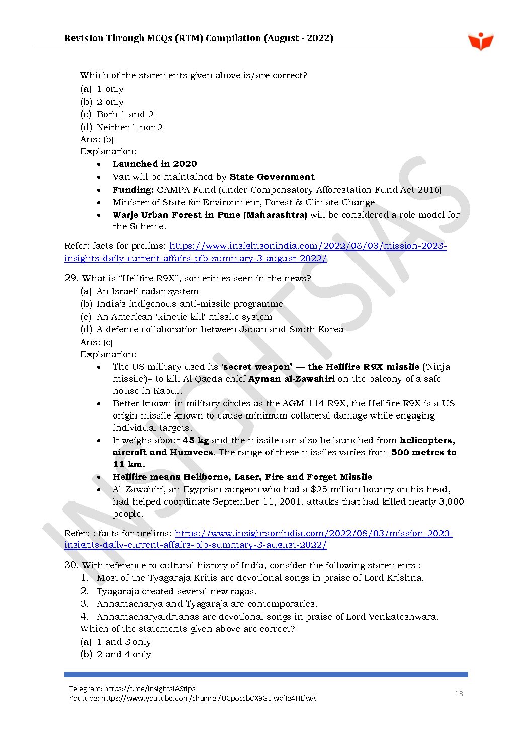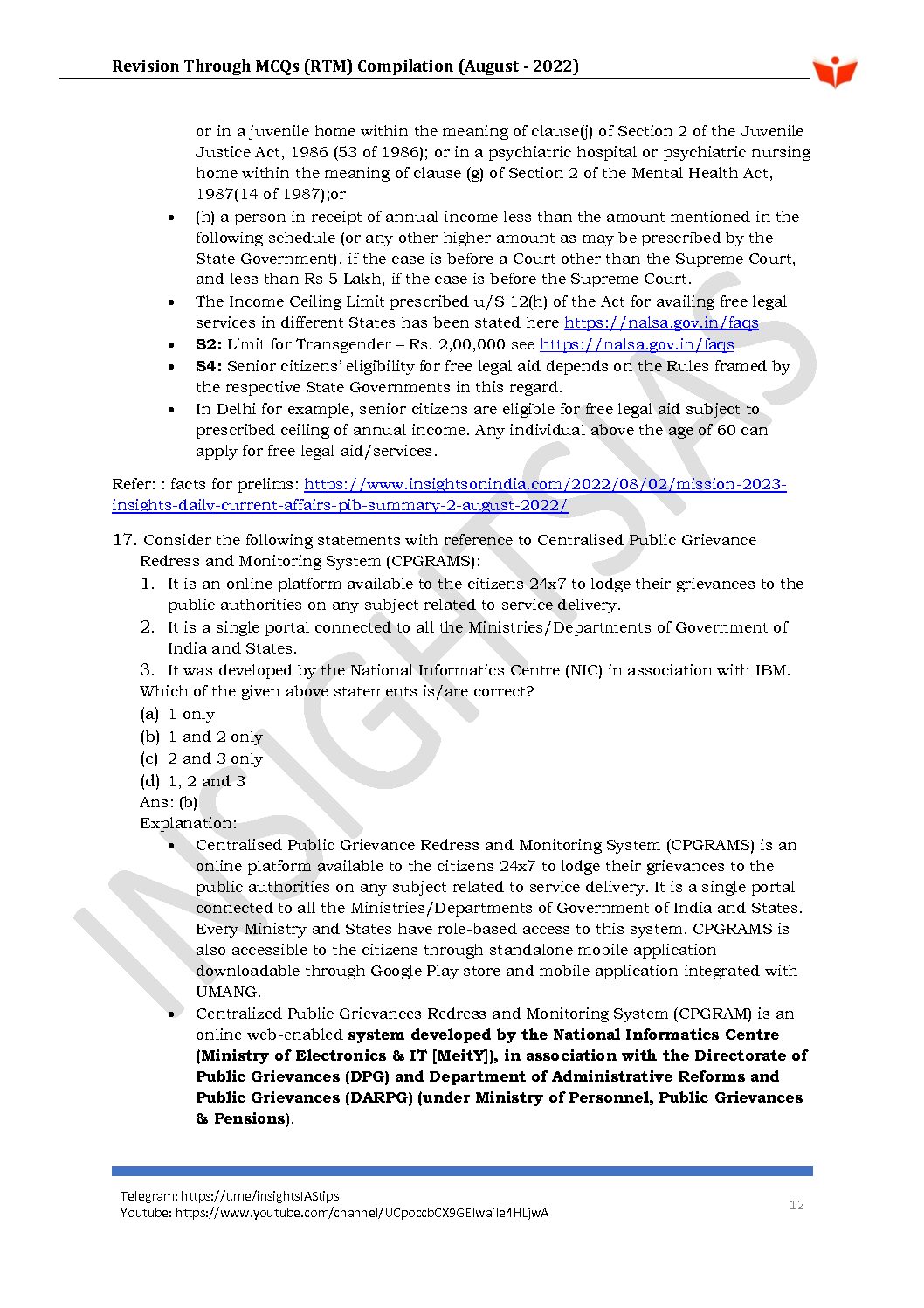 INSIGHTS IAS INSIGHTS ONINDIA RTM COMPILATIONS PRELIMS AUGUST 2022 (BLACK & WHITE)