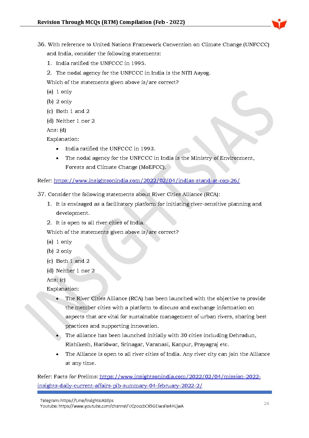 INSIGHTS IAS INSIGHTS ONINDIA RTM COMPILATIONS PRELIMS FEBRUARY- 2022 (BLACK & WHITE)