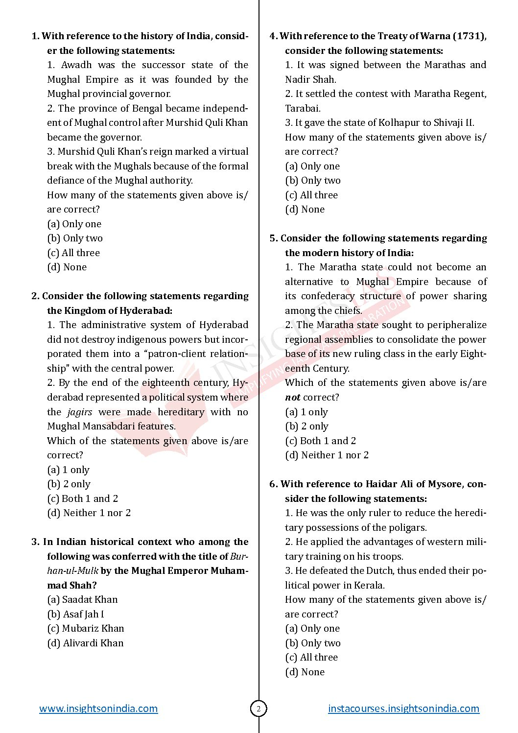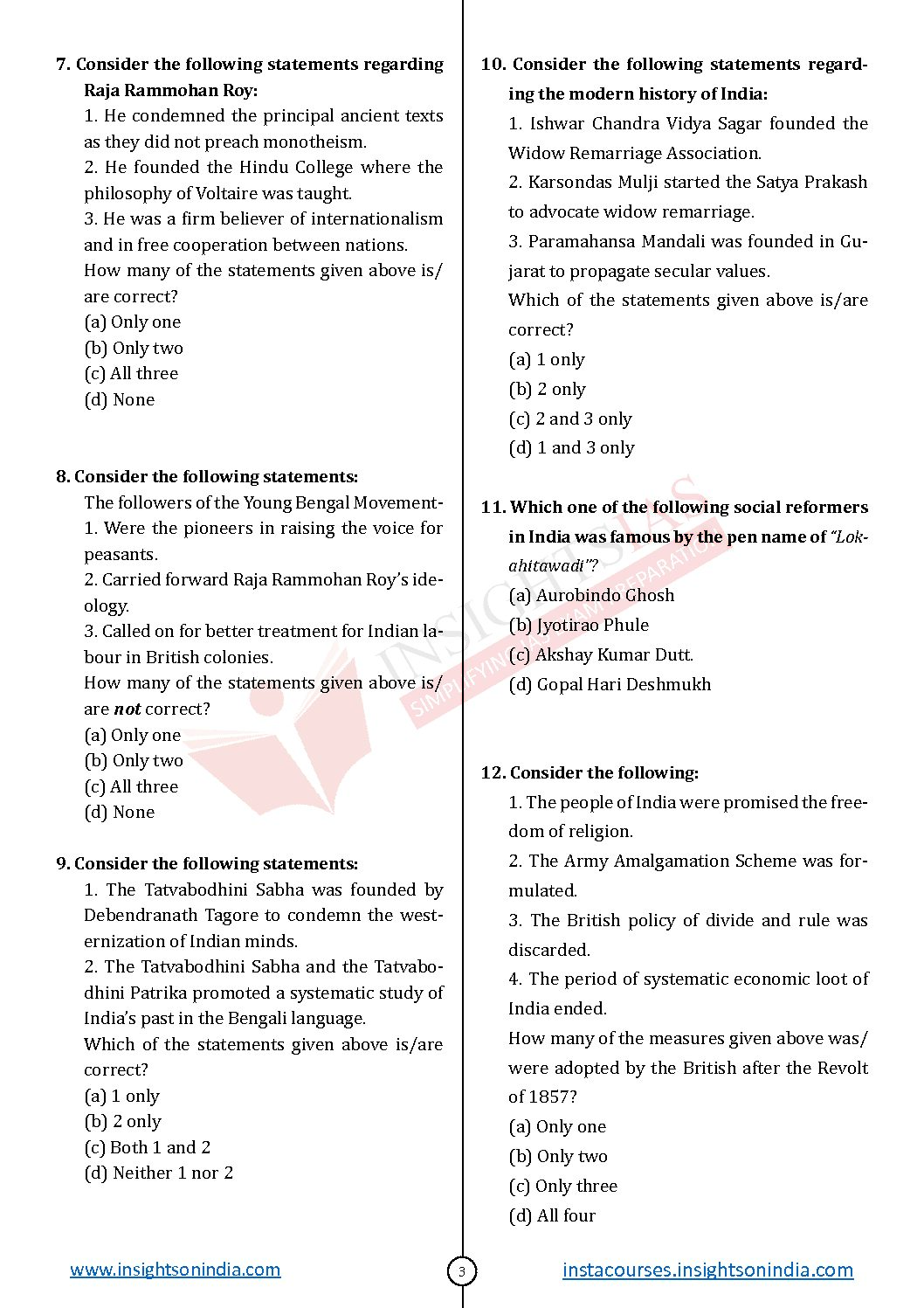 INSIGHTS ONINDIA PT TEST-21 ( HISTORY AND ECONOMICS PRELIMS REVISION TEST-3 ) 2019