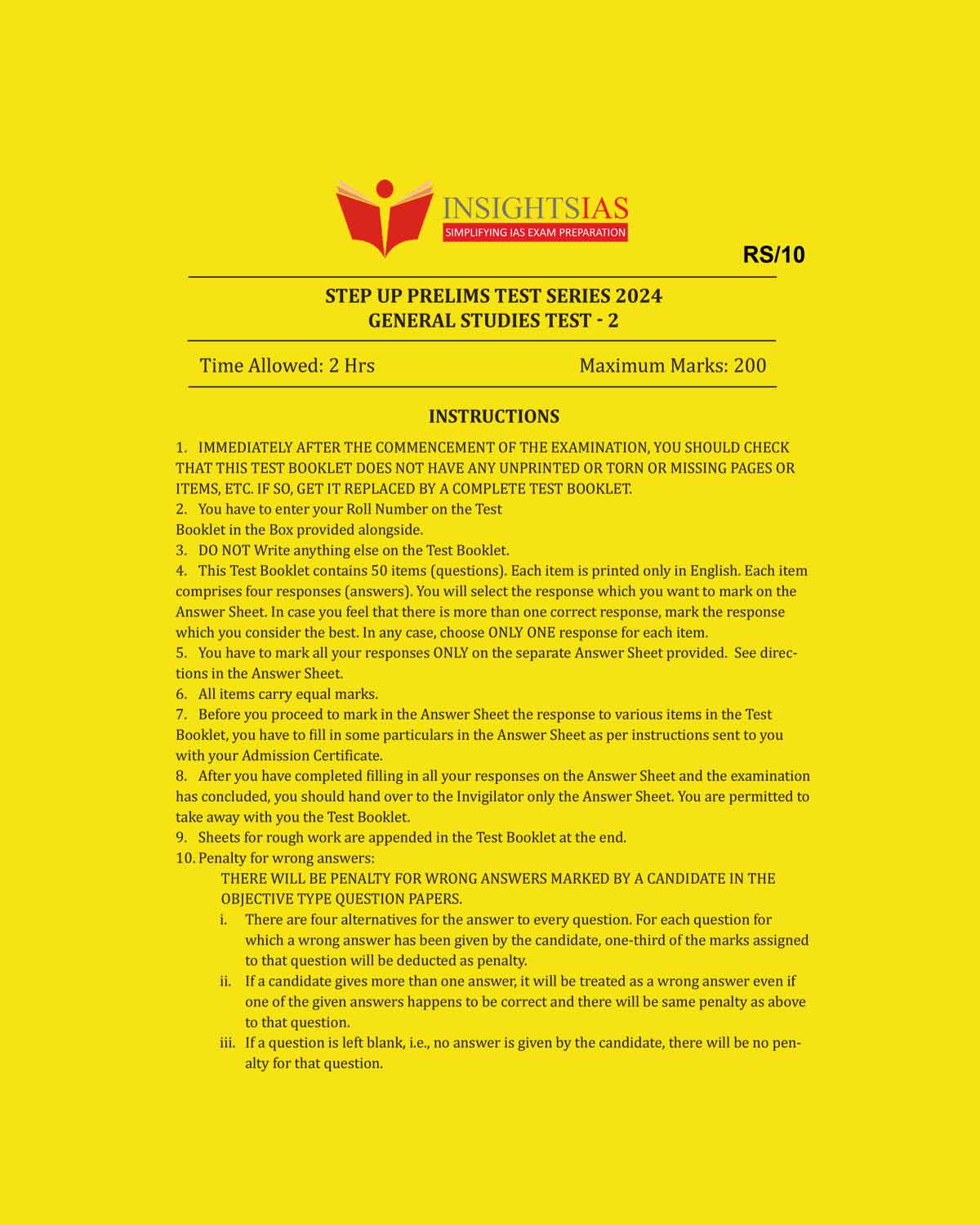 / INSIGHTS IAS INSIGHTSONINDIA 2024 STEP UP MOCK TEST 2 SERIES 2024 FINAL {ONLY QUESTION} {ENGLISH} {BLACK AND WHITE}