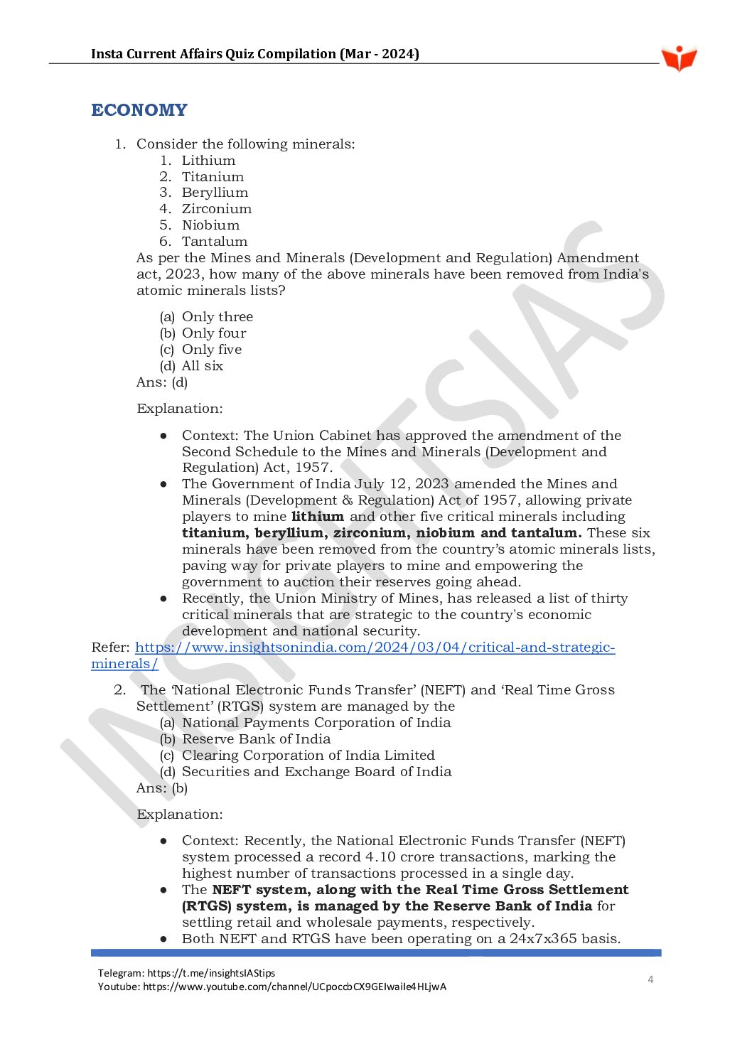 INSIGHTS IAS INSIGHTSONINDIA INSTA CURRENT AFFAIRS QUIZ MARCH 2024 FINAL {ENGLISH} {BLACK AND WHITE} quantity
