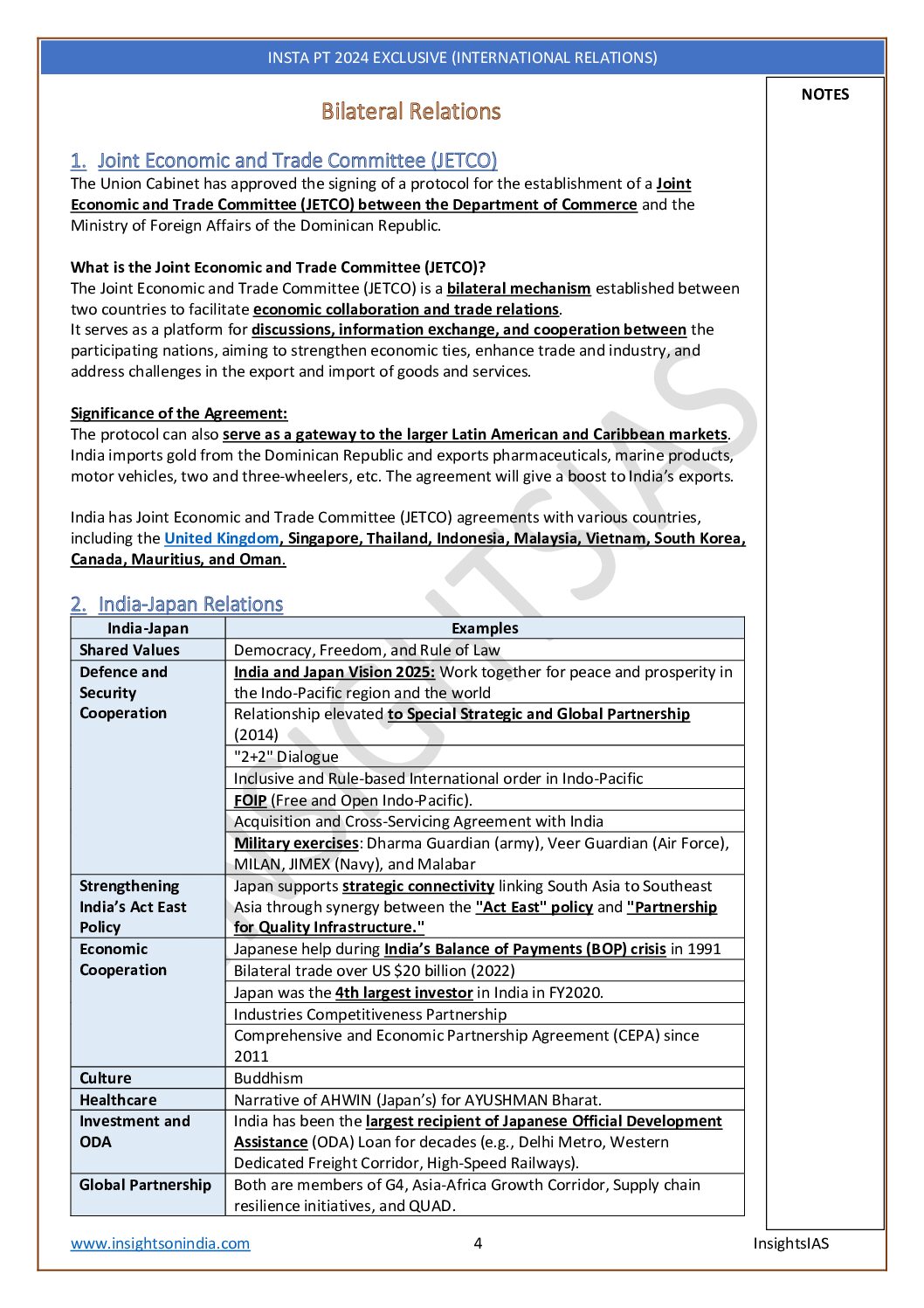 INSIGHTS IAS INSIGHTSONINDIA INSTA PT EXCLUSIVE 2024 INTERNATIONAL RELATION {MAY 2023 TO JAN 2024} 2024 FINAL {ENGLISH} {BLACK AND WHITE}
