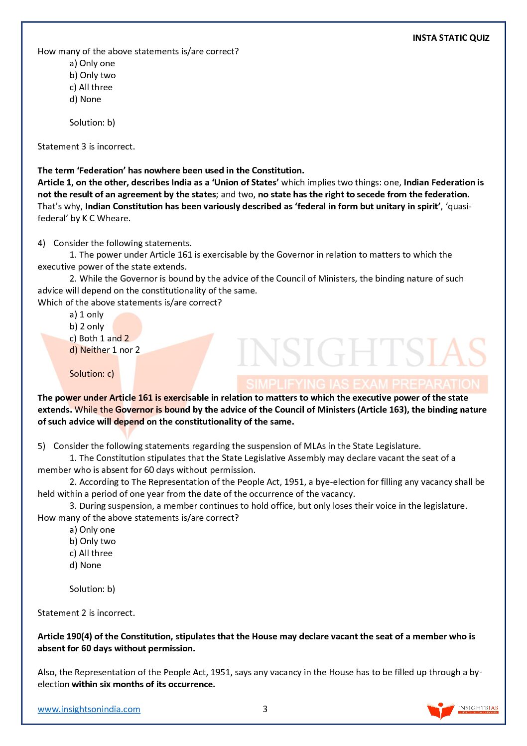 INSIGHTSIAS INSTA Static Quiz February 2021