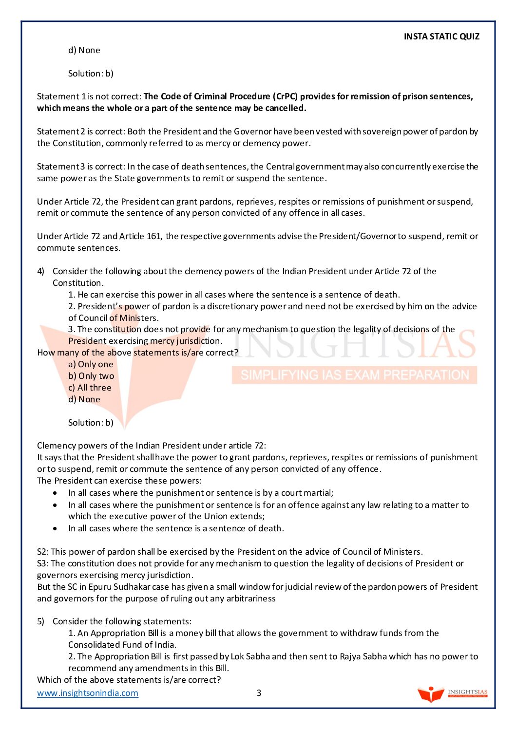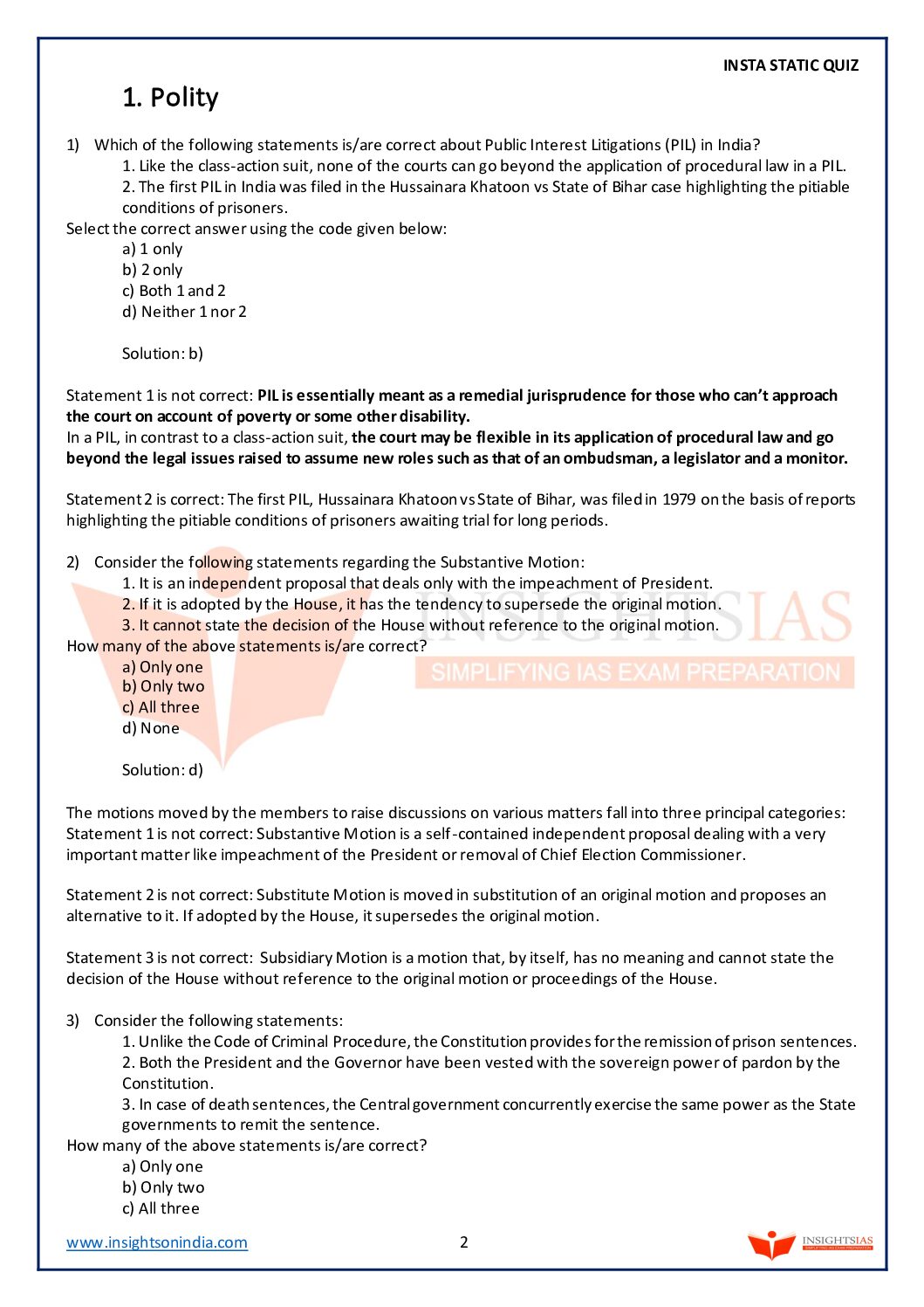 INSIGHTSIAS INSTA Static Quiz April 2021