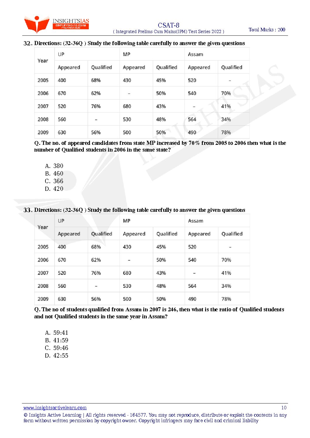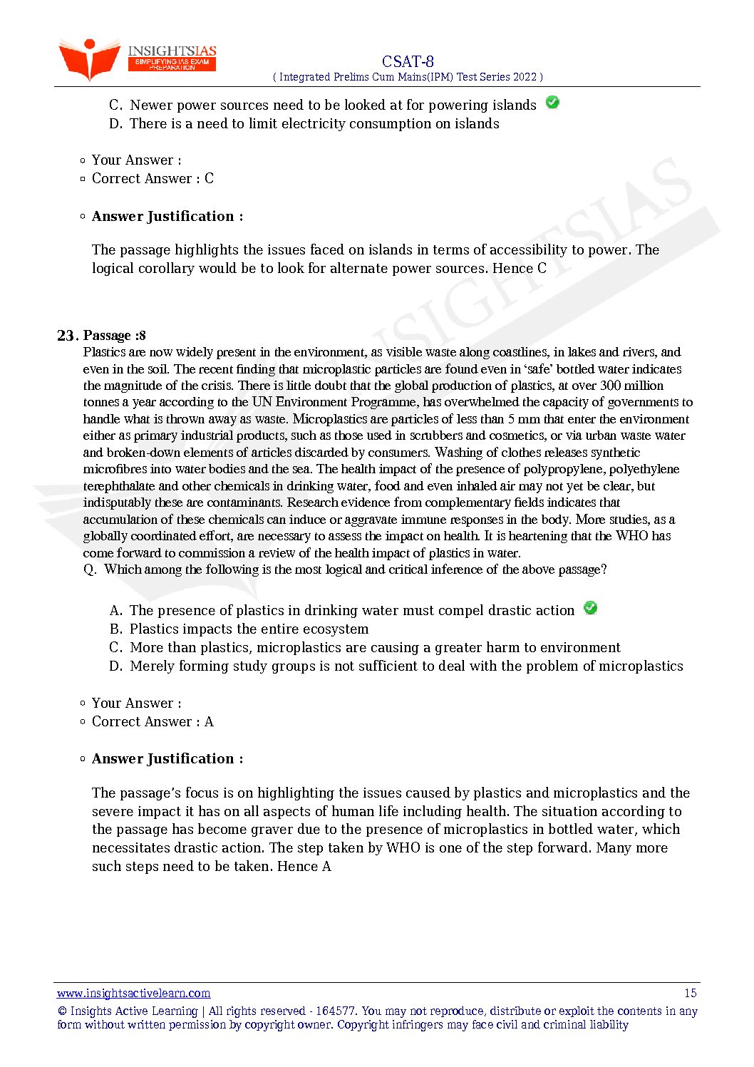 / INSIGHTS ONINDIA 2022 PT TEST-08 WITH SOLUTION (CSAT-08) (SUBJECTWISE APPROACH) 2022 (BLACK & WHITE)