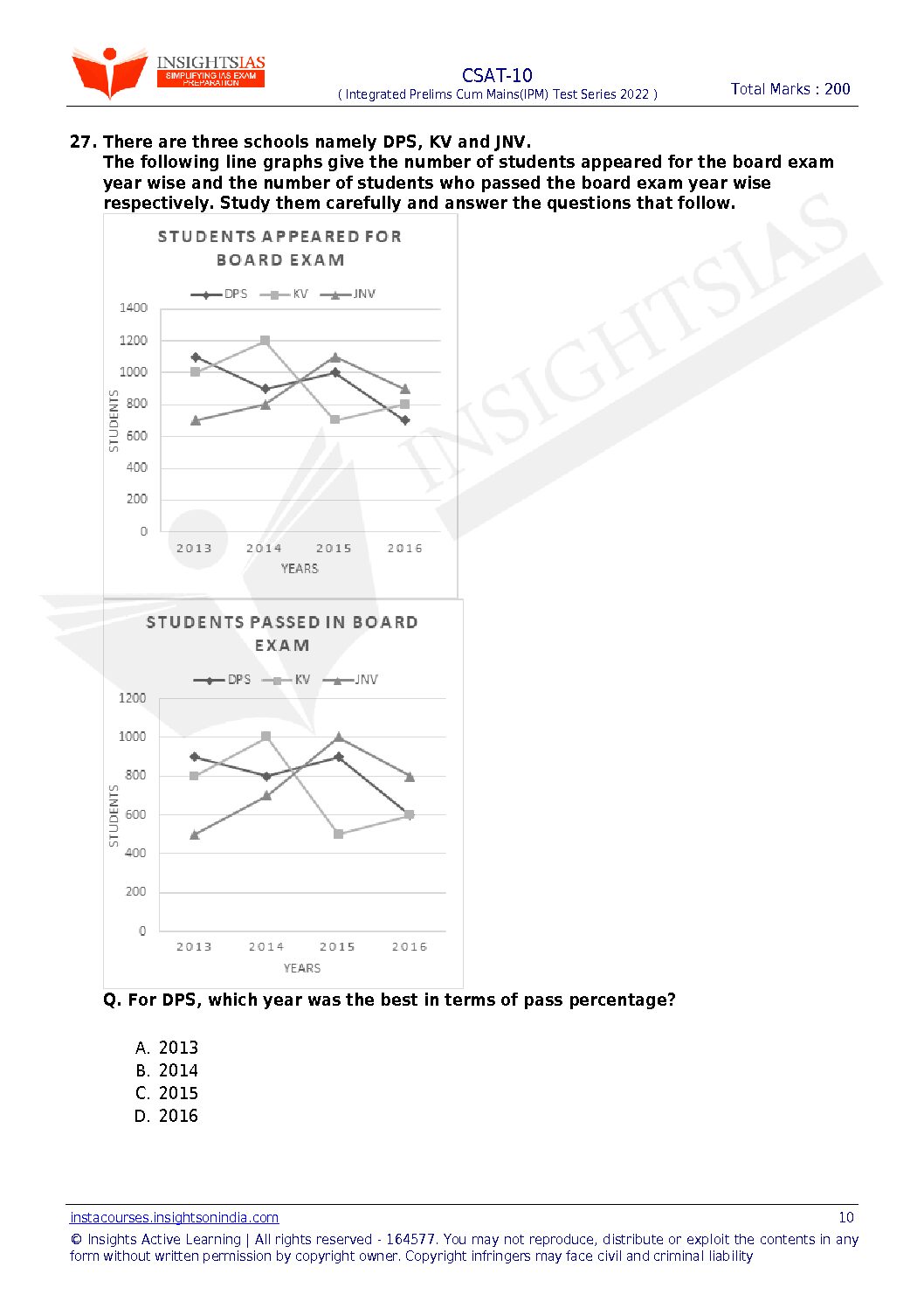 / INSIGHTS ONINDIA 2022 PT TEST-10 WITH SOLUTION (CSAT-10) (SUBJECTWISE APPROACH) 2022 (BLACK & WHITE)