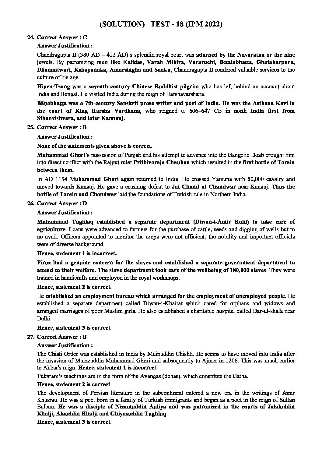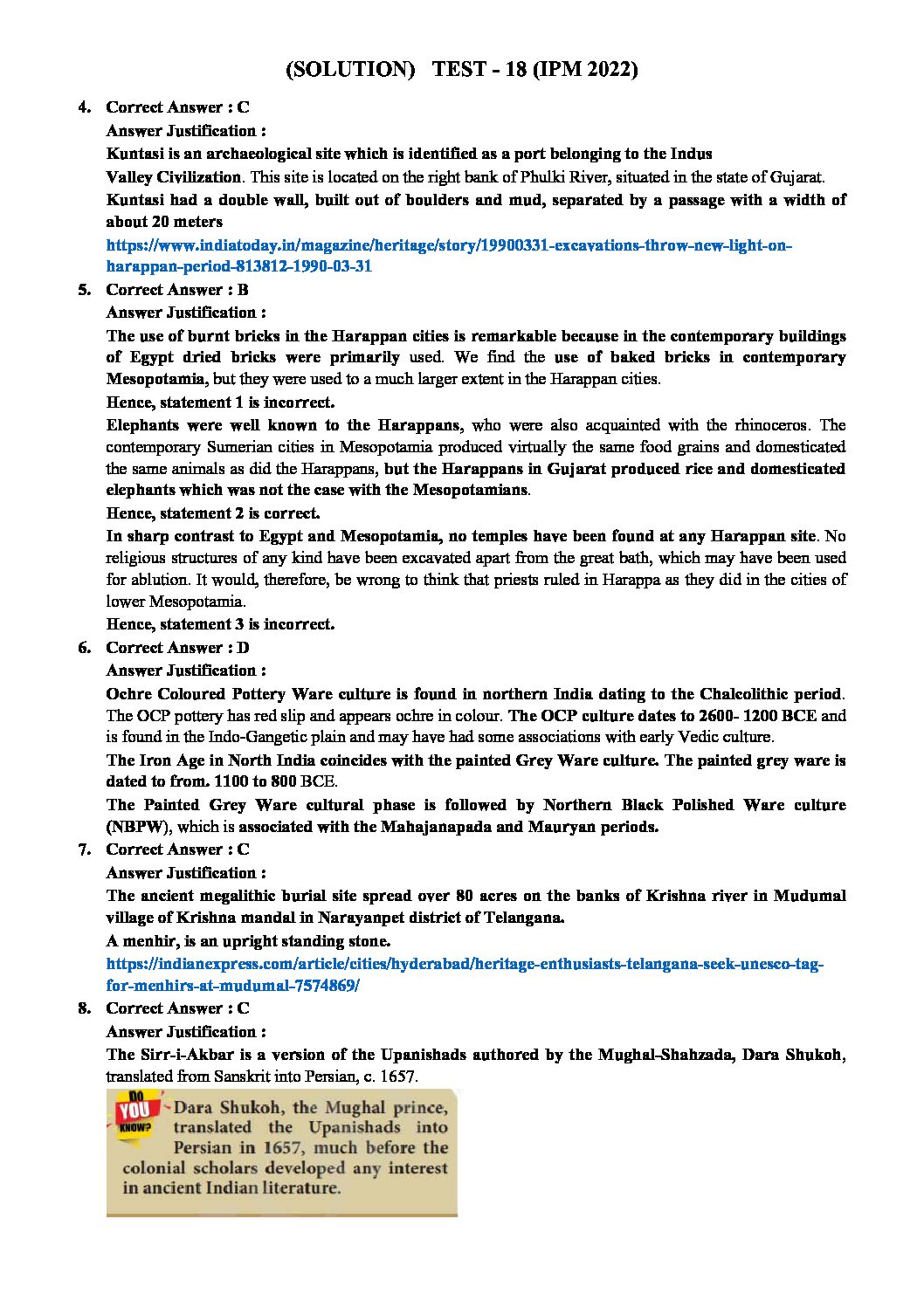 INSIGHTS ONINDIA 2022 PT TEST-18 WITH SOLUTION (2022) (ANCIENT HISTORY AND ART & CULTURE ) (SUBJECTWISE APPORACH ) (BLACK & WHITE)