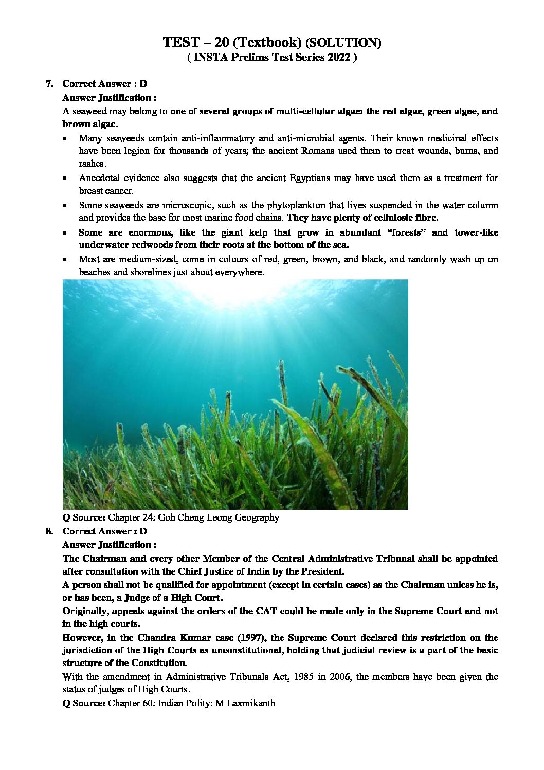 INSIGHTS ONINDIA 2022 PT TEST-20 WITH SOLUTION (STANDARD SOURCES +ENVIRONMENT-3 (THEMATIC)(TEXT BOOK WISE APPORACH ) 2022 (BLANK & WHITE)
