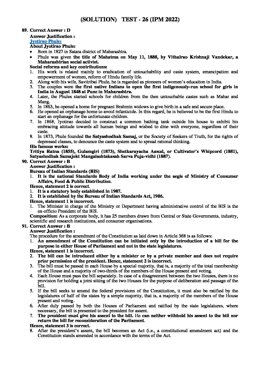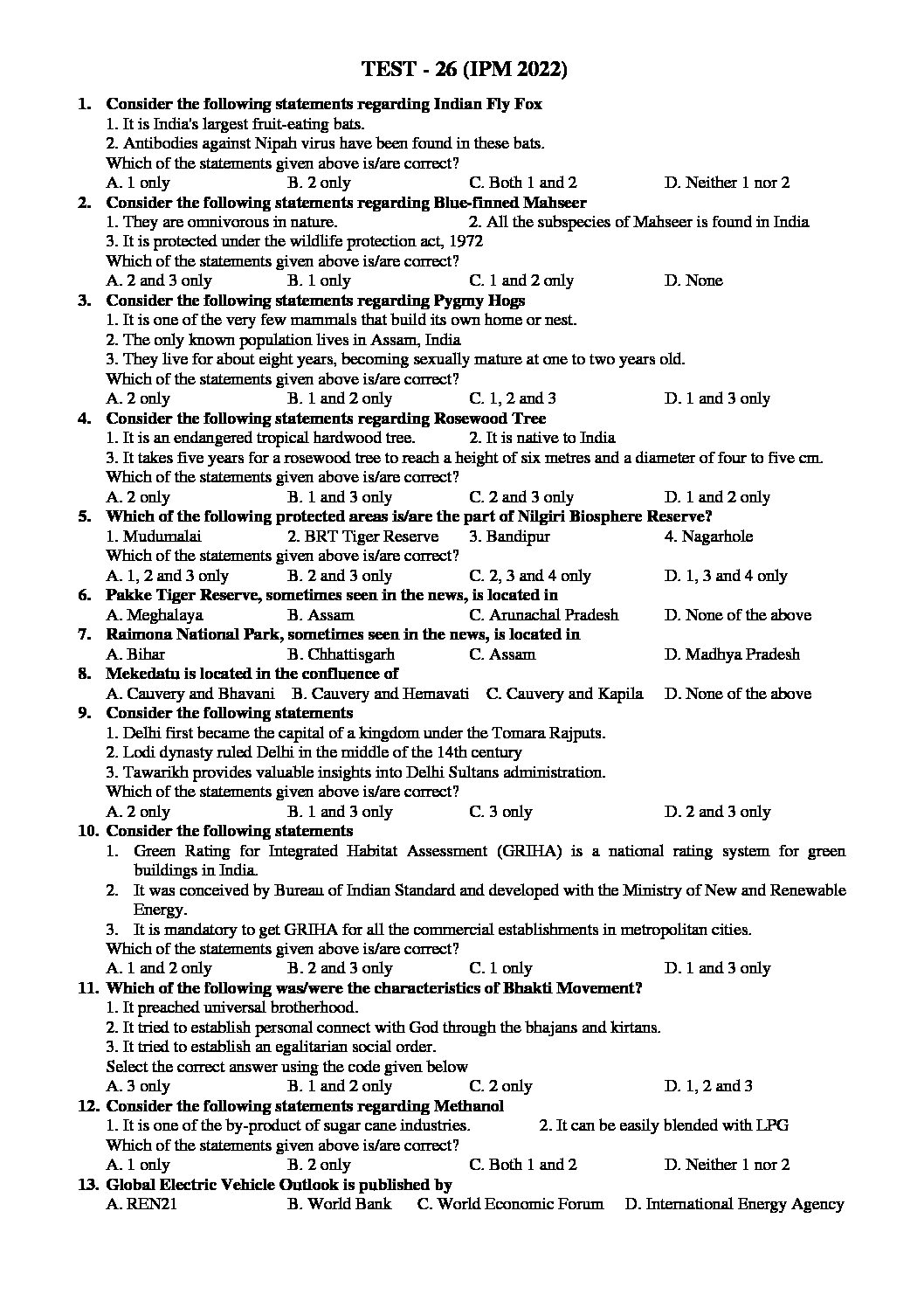 INSIGHTS ONINDIA 2022 PT TEST-26 WITH SOLUTION (2022) ECOLOGY & ENVIRONMENT (SUBJECTWISE APPORACH ) (BLACK & WHITE)