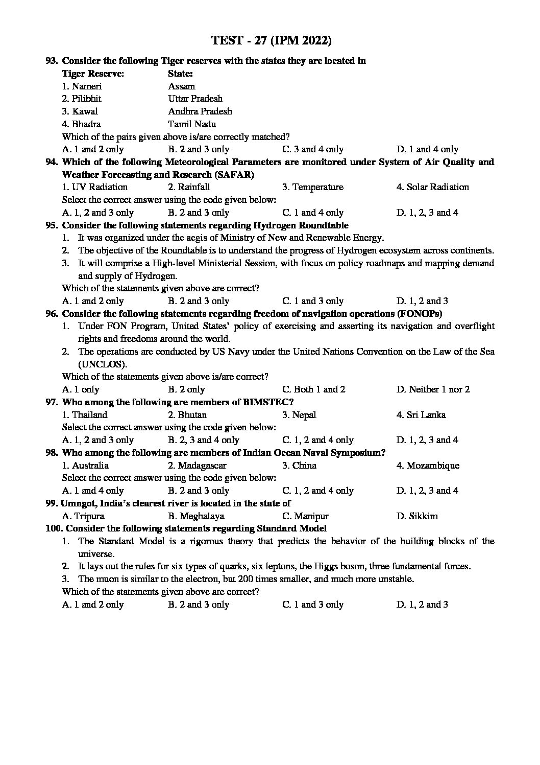 INSIGHTS ONINDIA 2022 PT TEST-27 WITH SOLUTION (2022) SCIENCE & TECHNOLOGY (SUBJECTWISE APPROACH ) (BLACK & WHITE)