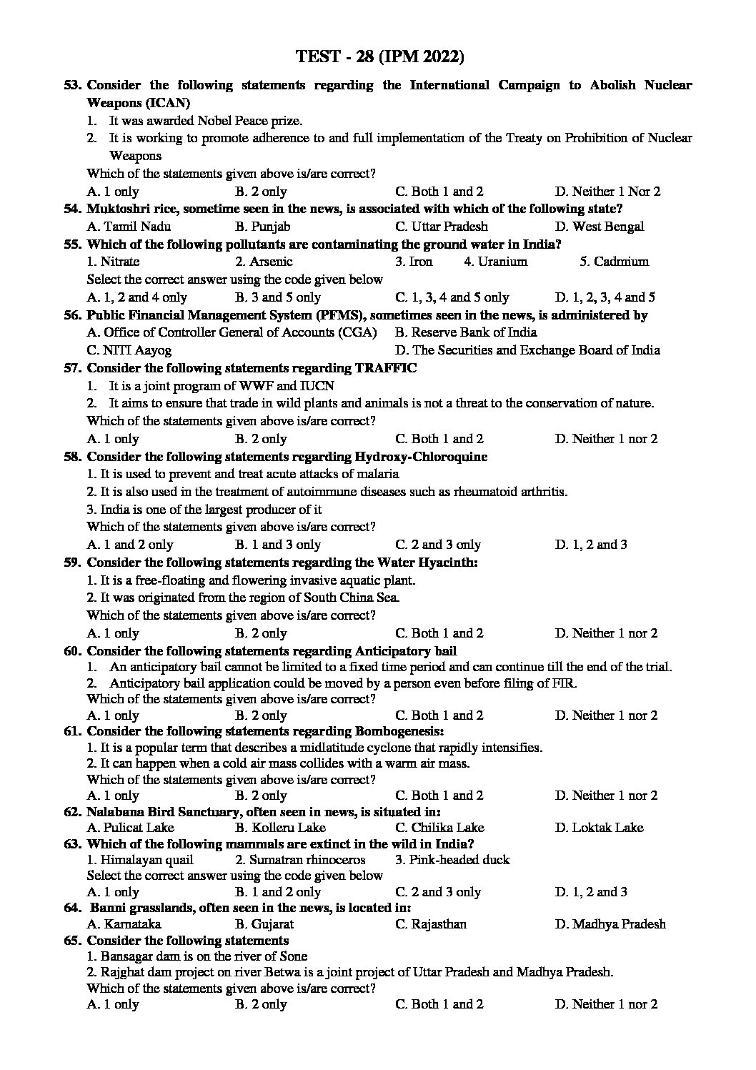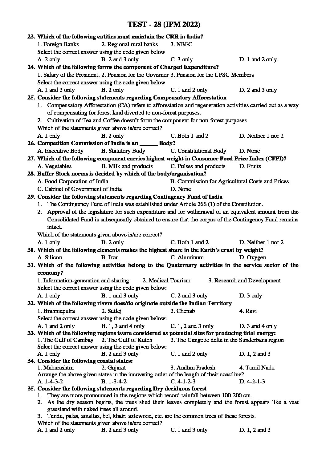 / INSIGHTS ONINDIA 2022 PT TEST-28 WITH SOLUTION (2022) ) GS 3 FULL SYLLABUS –(REVISION OF GS TESTS -32-34)- SUBJECTWISE APPROACH (BLACK & WHITE)