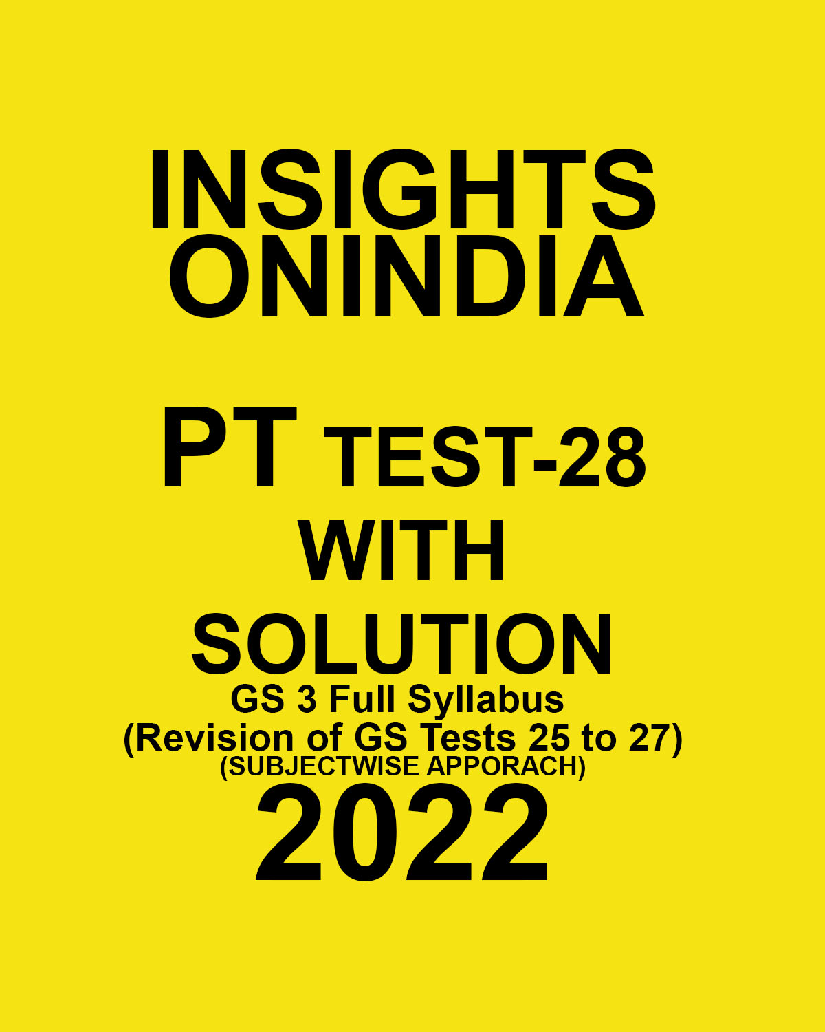 INSIGHTS ONINDIA 2022 PT TEST-28 WITH SOLUTION (2022) ) GS 3 FULL SYLLABUS –(REVISION OF GS TESTS -32-34)- SUBJECTWISE APPROACH (BLACK & WHITE)
