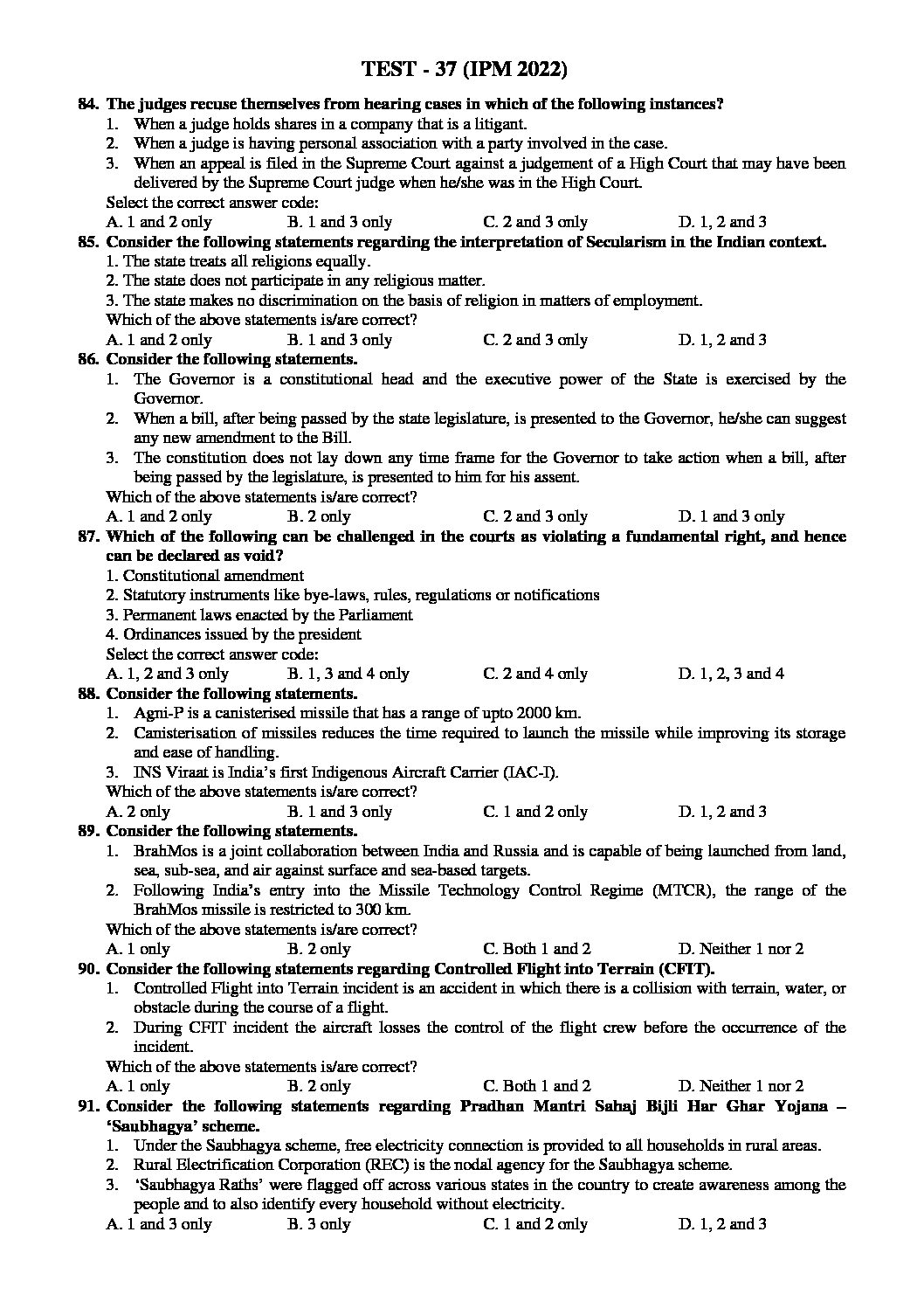 INSIGHTS ONINDIA 2022 PT TEST-37 WITH SOLUTION (2022 FULL SYLLABUS) (SUBJECTWISE APPROACH) (BLACK & WHITE)