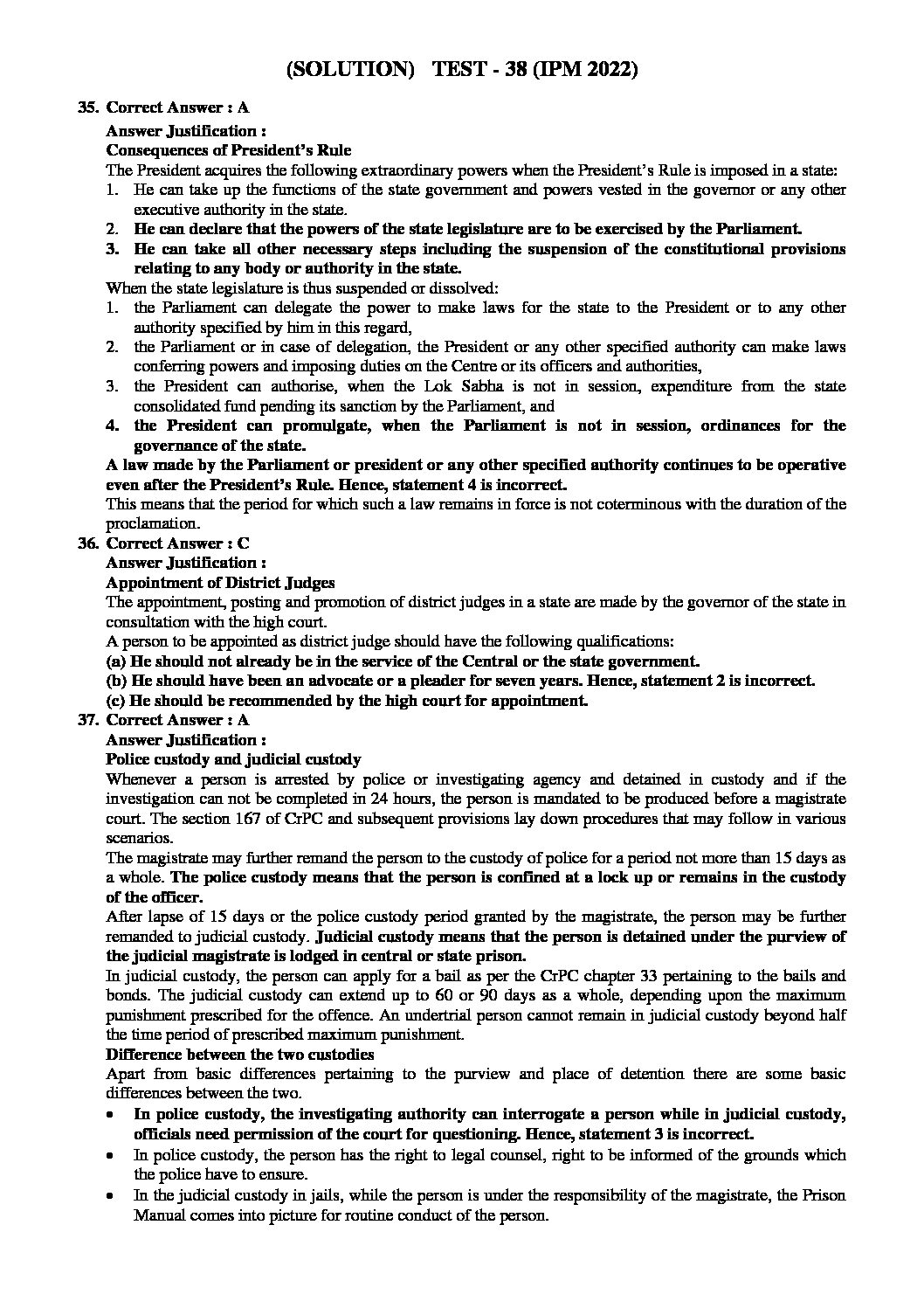 / INSIGHTS ONINDIA 2022 PT TEST-38 WITH SOLUTION (2022 FULL SYLLABUS) (SUBJECTWISE APPROACH) (BLACK & WHITE)
