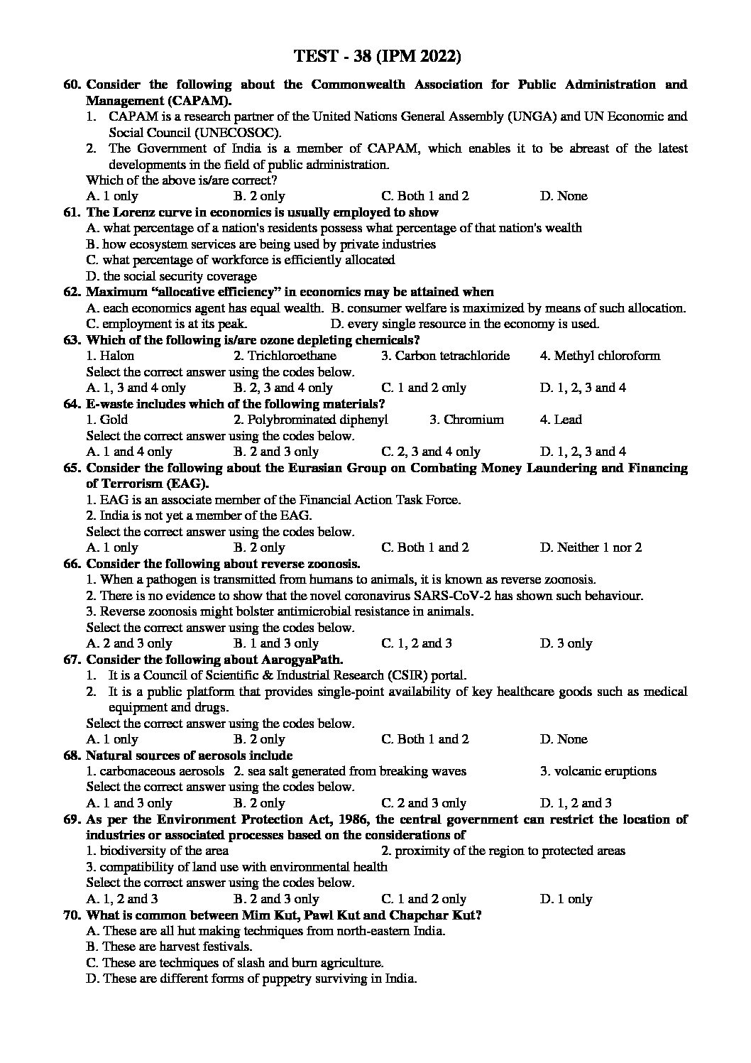 INSIGHTS ONINDIA 2022 PT TEST-38 WITH SOLUTION (2022 FULL SYLLABUS) (SUBJECTWISE APPROACH) (BLACK & WHITE)
