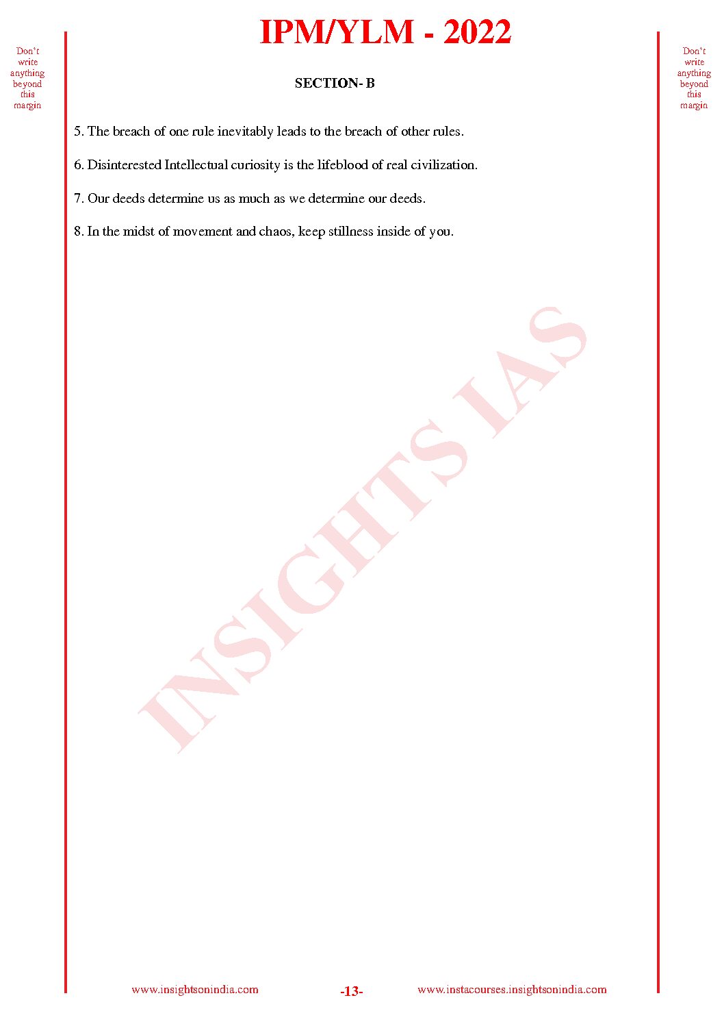 / INSIGHTS ONINDIA 2022 QCA TEST-43 QCA (QUESTION CUM ANSWER BOOKLET) (BLACK & WHITE)