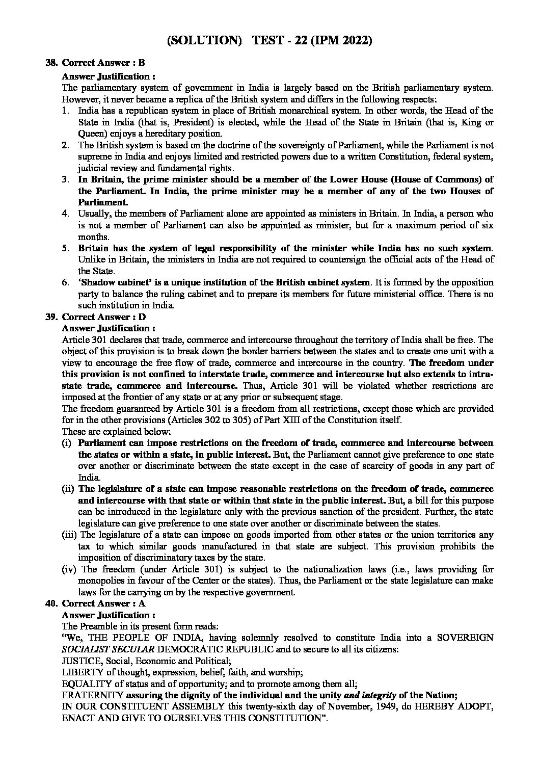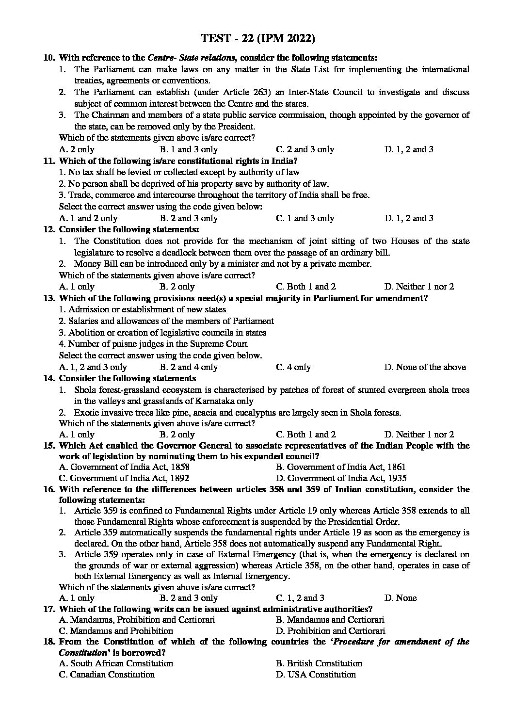 / INSIGHTS ONINDIA 2022 PT TEST-22 WITH SOLUTION (2022) (POLITY) SUBJECTWISE APPROACH )(BLACK & WHITE)