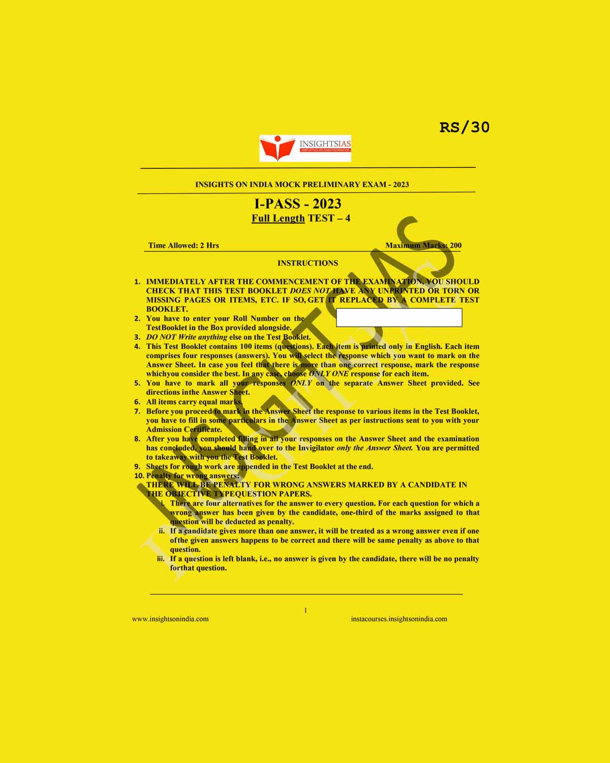 / INSIGHTS ONINDIA 2023 I PASS TEST -4 (BLACK & WHITE)