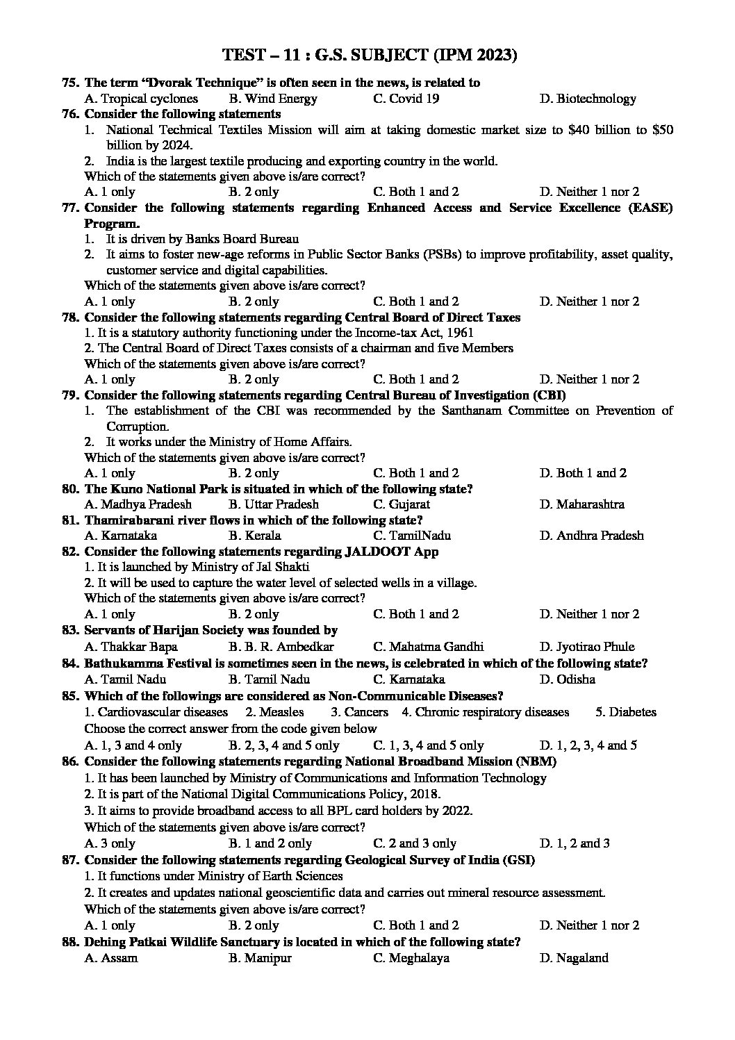 INSIGHTS ONINDIA 2023 SUBJECTWISE PT TEST-11 WITH SOLUTION (FULL GS 2 PRELIMS ( REVISION OF SUBJECTWISE GS TEST 8-10 (SUBJECTWISE APPROACH) (BLACK & WHITE)