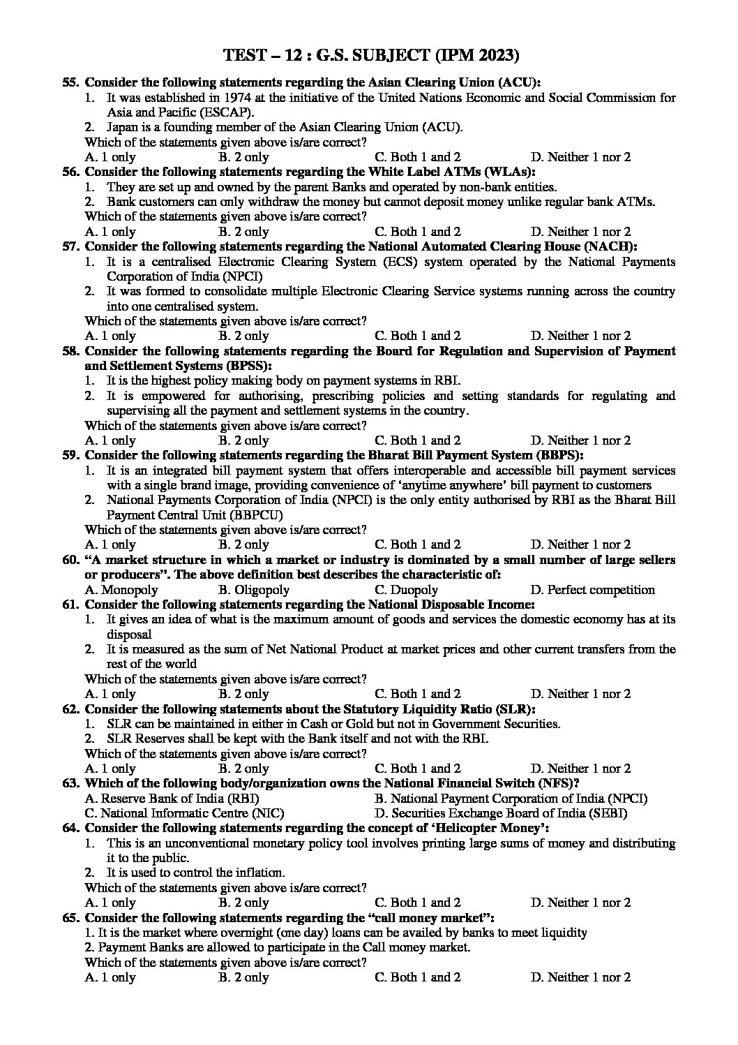 INSIGHTS ONINDIA 2023 SUBJECTWISE PT TEST-12 WITH SOLUTION (TEXTBOOK BASED TEST 1-11 SYLLABUS ) SUBJECTWISE APPROACH 2023 (BLACK & WHITE)