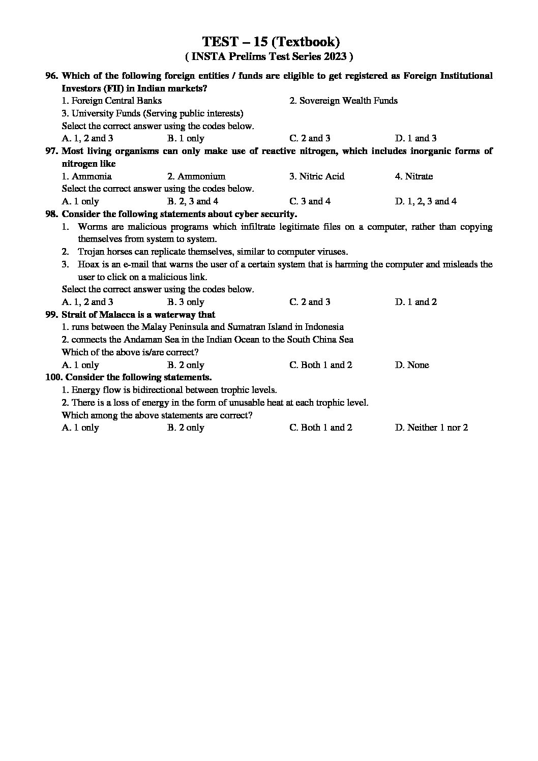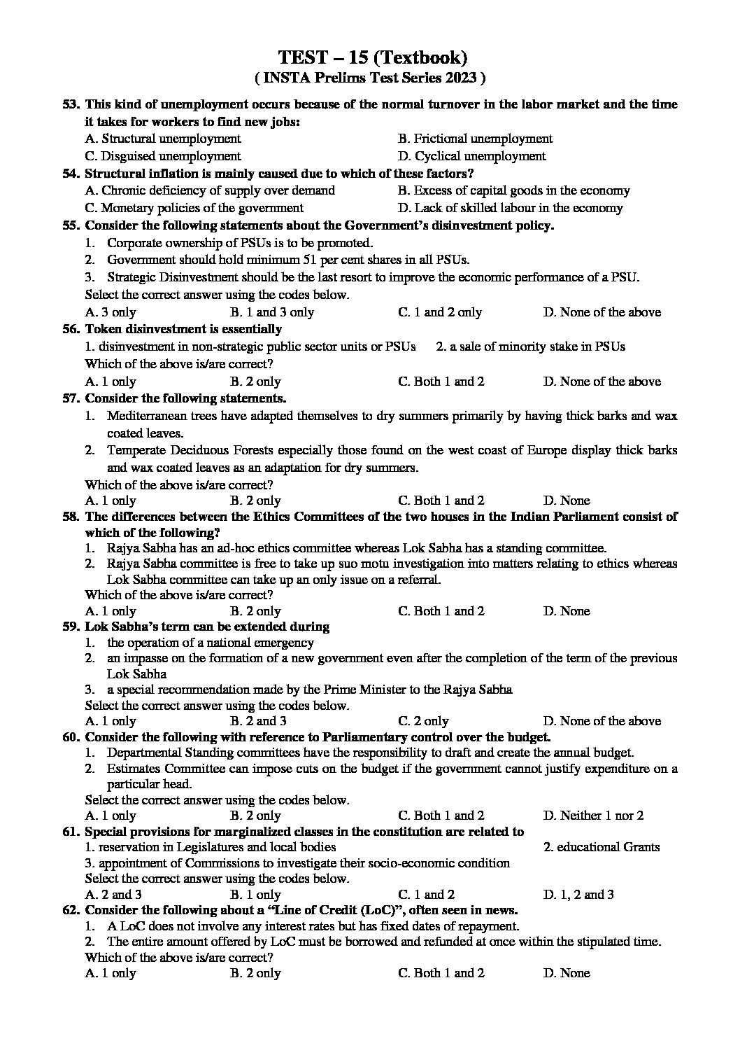 INSIGHTS ONINDIA 2023 TEXTBOOK WISE PT TEST-15 WITH SOLUTION (STANDARD SOURCES + AGRICULTURE-1 EVENTS RIGHTS FROM 1ST JUNE 2022 5TH NOVEMBER 2022) TEXTBOOK WISE APPROACH 2023 (BLACK & WHITE)