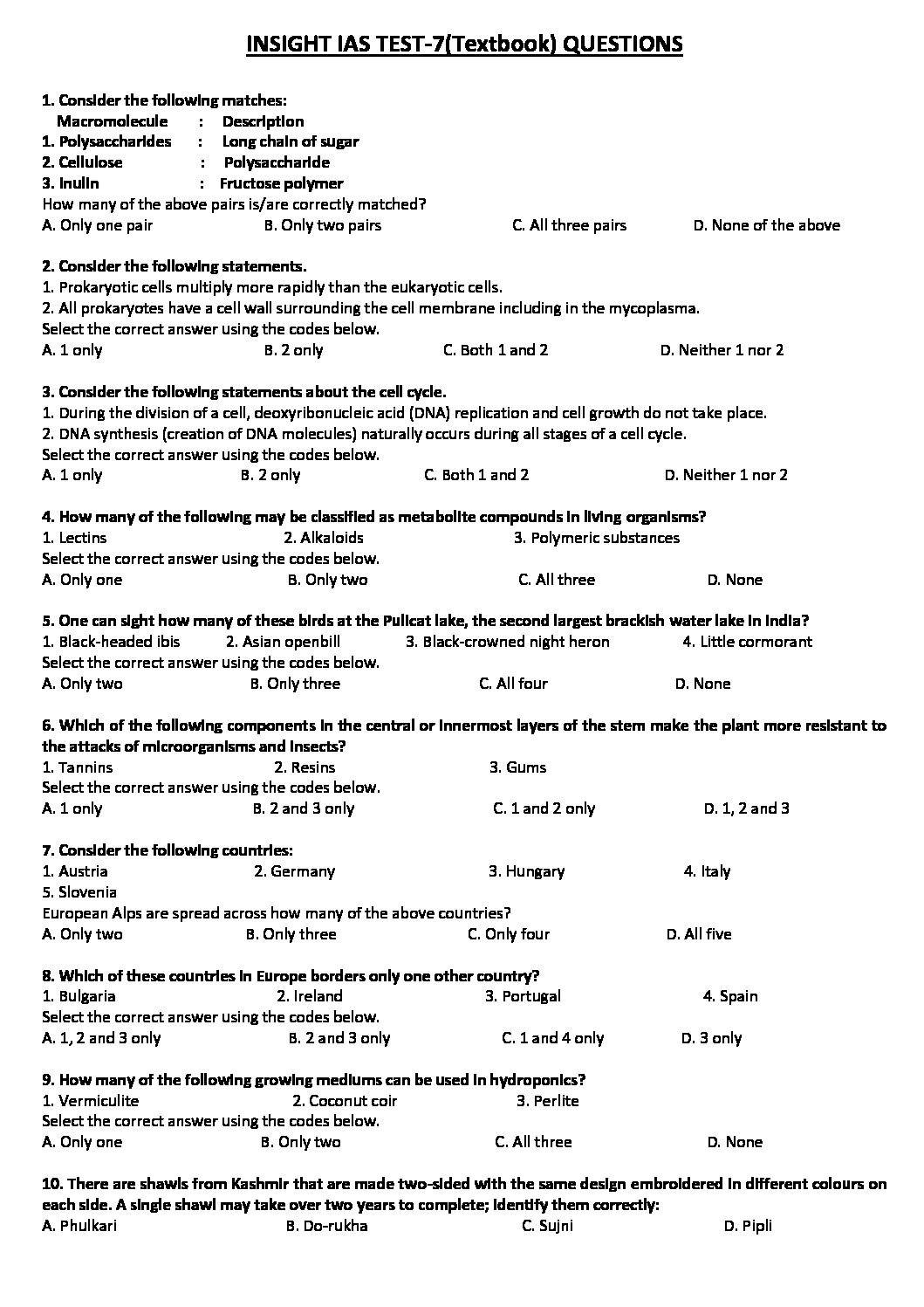 INSIGHTS ONINDIA 2024 TEXTBOOKWISE PT TEST-07 (NCERT CLASS XI) ENGLISH MEDIUM 2024 (BLACK & WHITE)