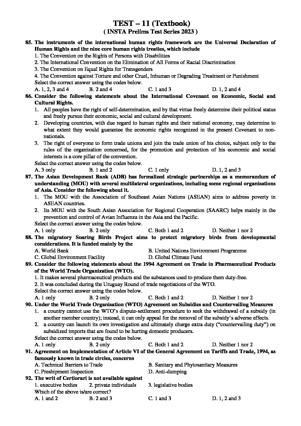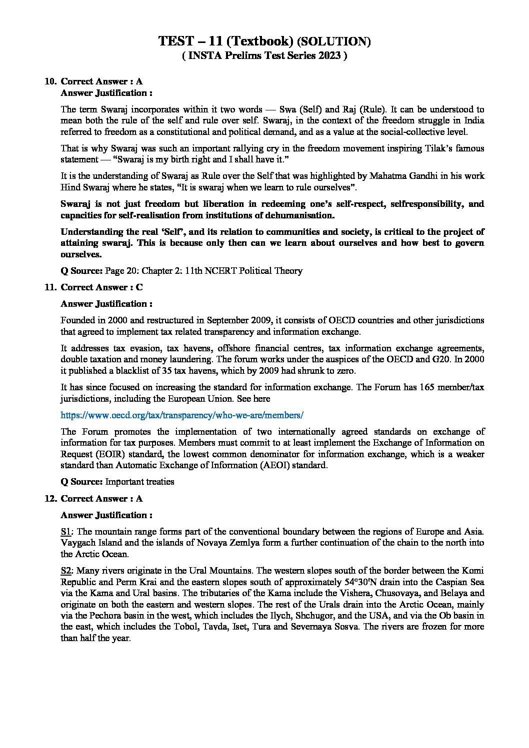 INSIGHTS ONINDIA 2023 TEXTBOOKWISE PT TEST-11 WITH SOLUTION (NCERT (CLASS XII)INTERNATIONAL -1 (THEMATIC ) CURRENT EVENTS – 1ST JUNE 2022 TO 26THSEPTEMBER 2022 )TEXT BOOKWISE APPROACH 2023 (BLACK & WHITE)