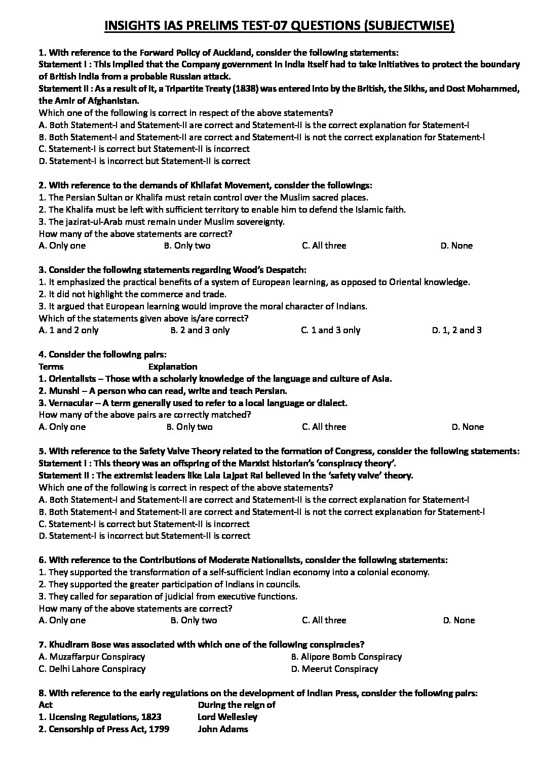 INSIGHTS ONINDIA 2024 SUBJECTWISE PT TEST-07 (REVISION OF GS TEST 1 TO 6) ENGLISH MEDIUM 2024 (BLACK & WHITE)
