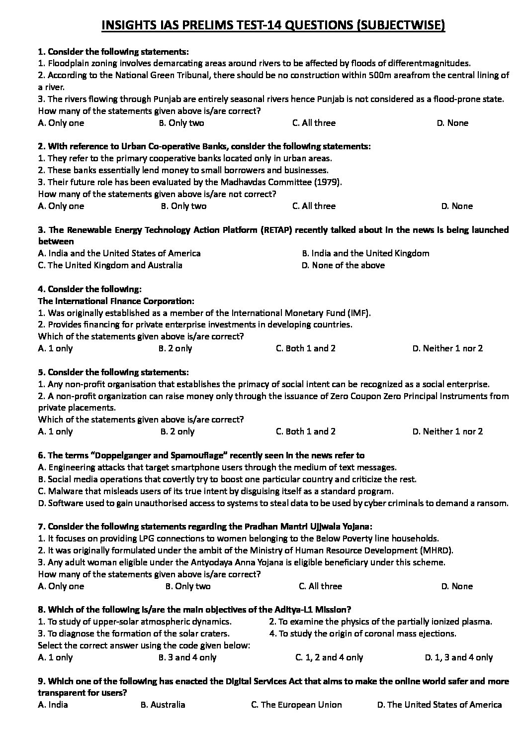 / INSIGHTS ONINDIA 2024 SUBJECTWISE PT TEST-14 (ECOLOGY & ENVIRONMENT) ENGLISH MEDIUM 2024 (BLACK & WHITE)