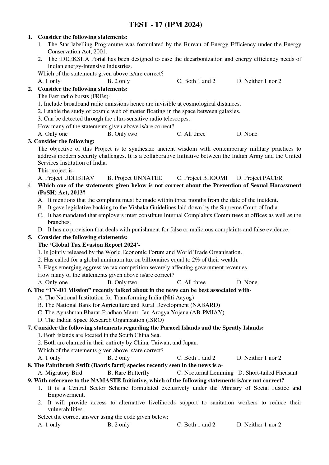 INSIGHTS ONINDIA 2024 SUBJECTWISE TEST-17 FINAL {ENGLISH} {BLACK AND WHITE}